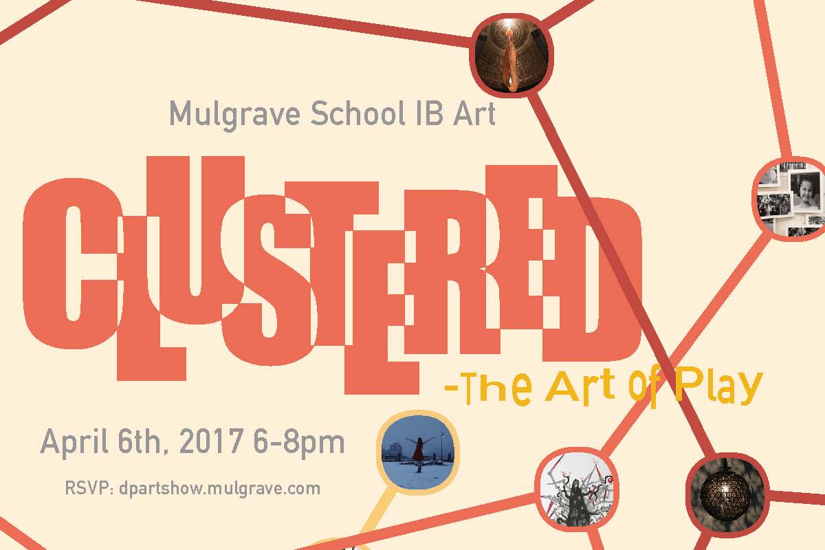 Clustered Art Show-The Art of Play. A night of art appreciation and celebration as G11-12 students from art, music, film, and theatre have collaborated to produce beautiful showcases. With inspiration and mentorship from Amy-Claire Huestis, an artist-collaborator with The Vancouver Biennale, the students have produced pieces that push the boundaries of traditional art. RSVP at dpartshow@mulgrave.com