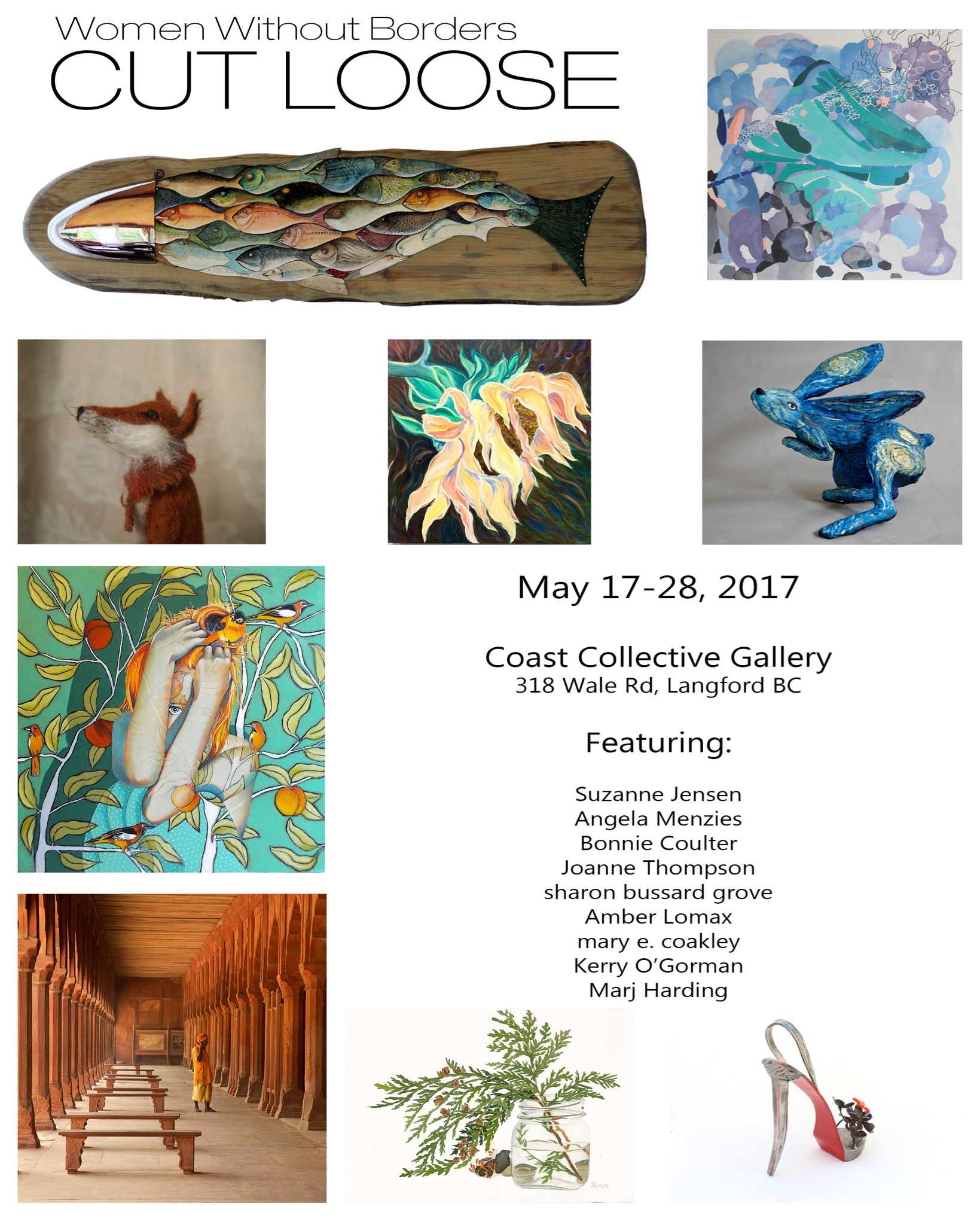 WOMEN WITHOUT BORDERS “CUT LOOSE” MAY 17 TO 28, 2017 “Women Without Borders” shine in “Cut Loose” Gorgeous glazes, metal creations, exquisite felt animals, eye catching paintings and photographic images of architectural wonder. Artists: Bonnie Coulter, sharon bussard grove, mary e coakley, Marj Harding, Suzanne Jensen, Amber Lomax, Angela Menzies, Kerry O’Gorman, Joanne Thomson.