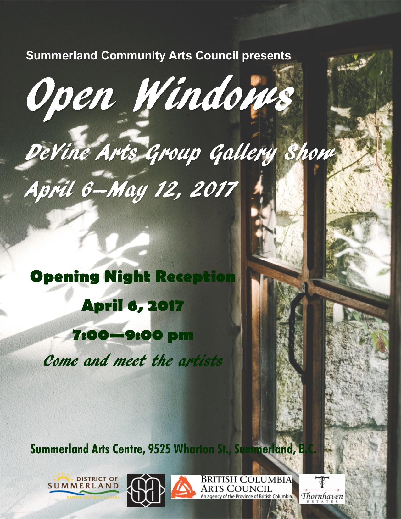 The De Vine Arts Group presents the first show in the Summerland Arts Centre’s new gallery. Come and see a wide collection variety of art in many forms by a local group of artists. The show is free and runs until May 12, 2017