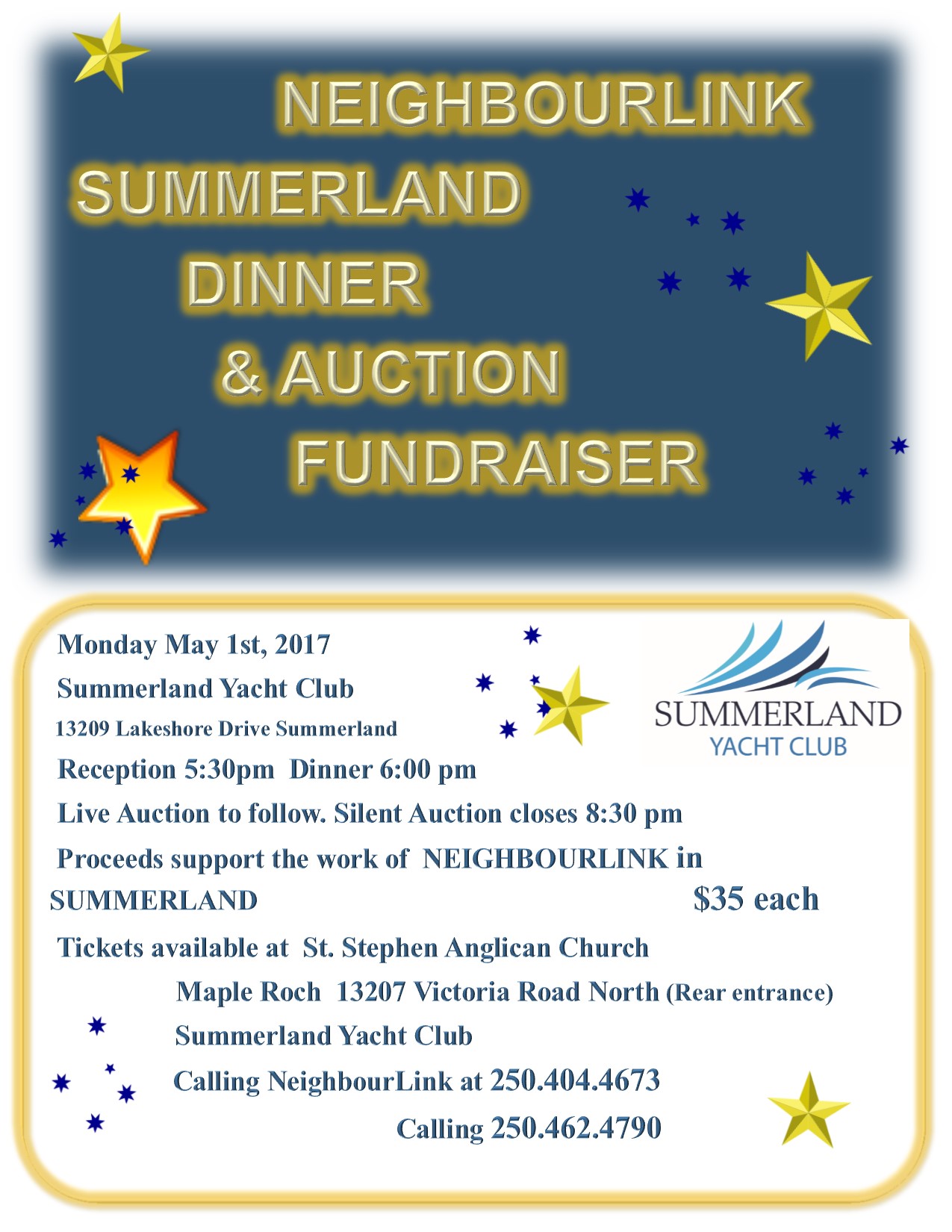 A dinner and silent auction to raise funds for NeighbourLink Summerland, a volunteer community organization focused on services to all the people of Summerland.
