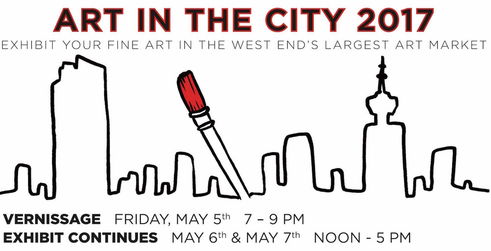 The West End Community Centre Association proudly presents the 12th annual Art in the City event- the West End’s largest art market. The public show runs Saturday and Sunday May 6th and 7th from noon until 5 PM. Please join us on Saturday and Sunday at the West End Community Center at 870 Denman Street where we are proud to be exhibiting the work of a diverse range of artists from Vancouver, the lower mainland, and other parts of BC. The show will feature a broad selection of disciplines including photographic works, watercolours, sculptures, ceramics, acrylics and other media. The weekend’s festivities will include some great live music featuring Chris Clarke Hyndman and his band, interactive art exhibits for both children and adults, refreshments, door prizes and much more. The Vancouver Film School will even be on site doing demonstrations of film makeup. It’s spring time. The weather is beautiful, the flowers are blooming, and it’s a wonderful time to come to the West End and experience the fine work of some of your local artists!