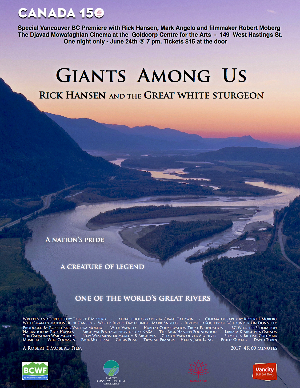 Special film premiere of Giants Among Us – Rick Hansen and the Great White Sturgeon. Featuring speakers Rick Hansen and Mark Angelo.