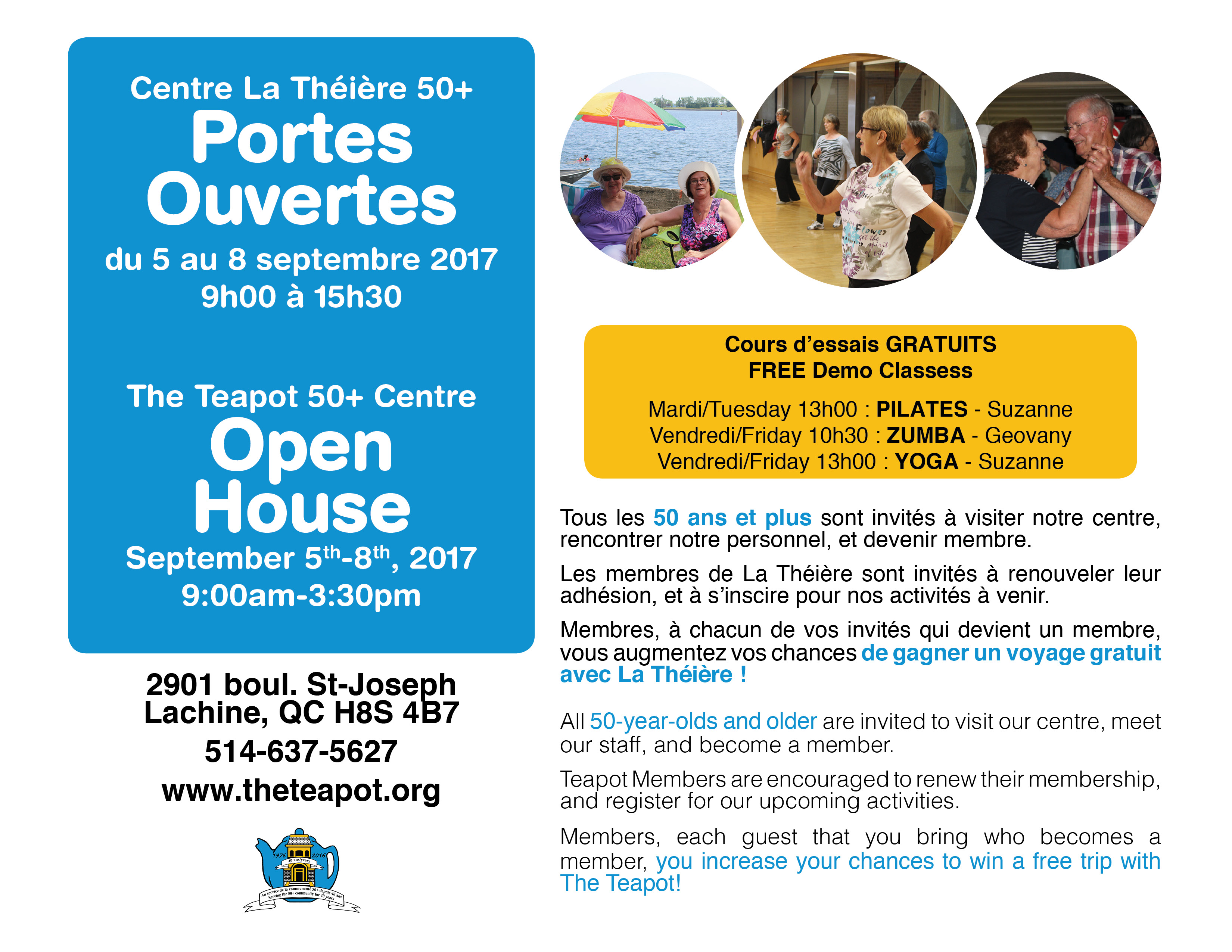 - teapot@theteapot.org 514-637-5627 (The Teapot 50+ Centre)