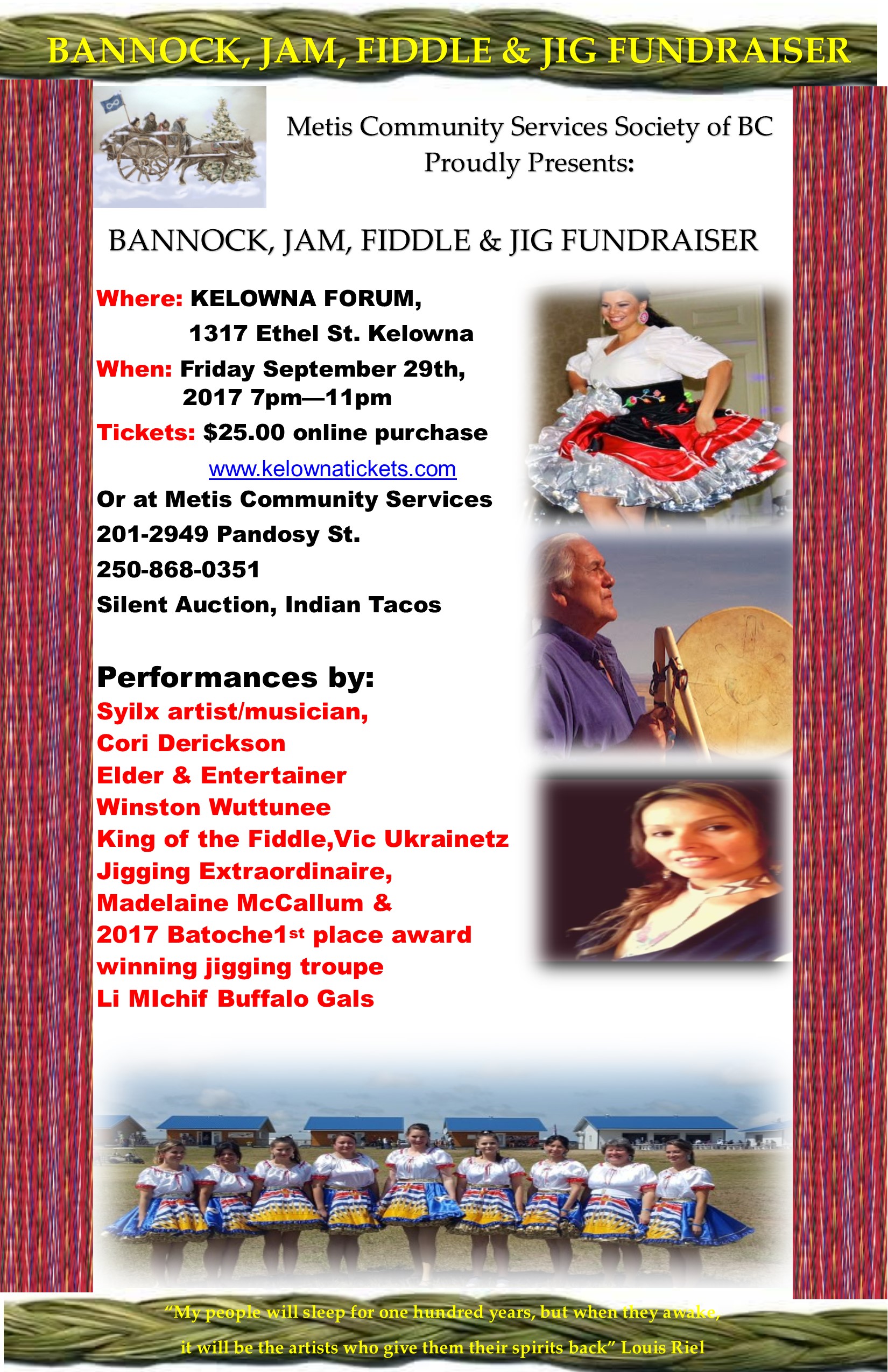 Metis Community services proudly presents a fun evening of Metis Culture silent auction , Indian tacos for sale