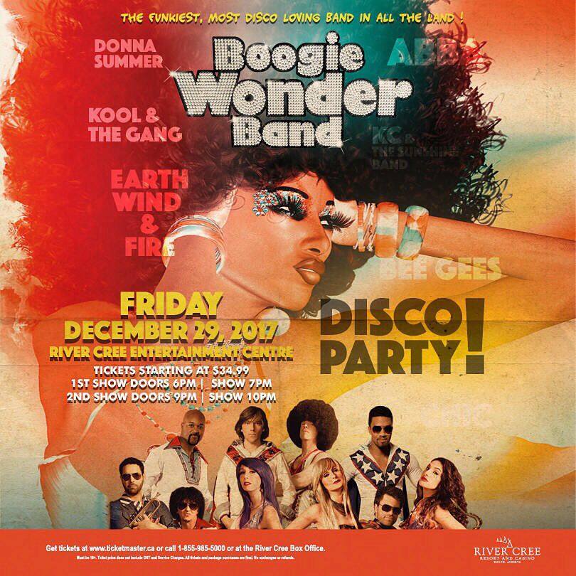 Known world-wide for getting any party started and having crowds on their feet, The Boogie Wonder Band, is coming to heat up Edmonton for one night only! This incredible funky band has traveled the planet, drawing huge crowds wherever they go! From their flashy, eye-popping costumes, each member of The Boogie Wonder Band brings a unique persona to the stage as they take you back in time to the glitz and glamour of the 70’s. There will be 2 performances, an early and late show. Disco still rules the dancefloor….