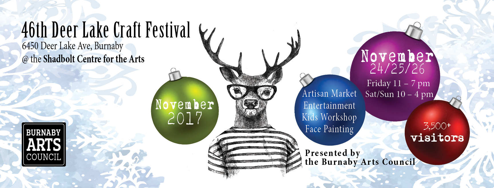 The Burnaby Arts Council is holding the 46th annual Deer Lake Craft Festival at the Shadbolt Centre for the Arts in Burnaby Nov. 24th, 25th 26th. Visitors will enjoy 60 local BC artisans including: sculpters, glass blowers, potters, wood, fashion and jewelry designers, seasonal food items plus many more new artisans participating in this year’s event! Also featured is live music, entertainment and children’s activities!