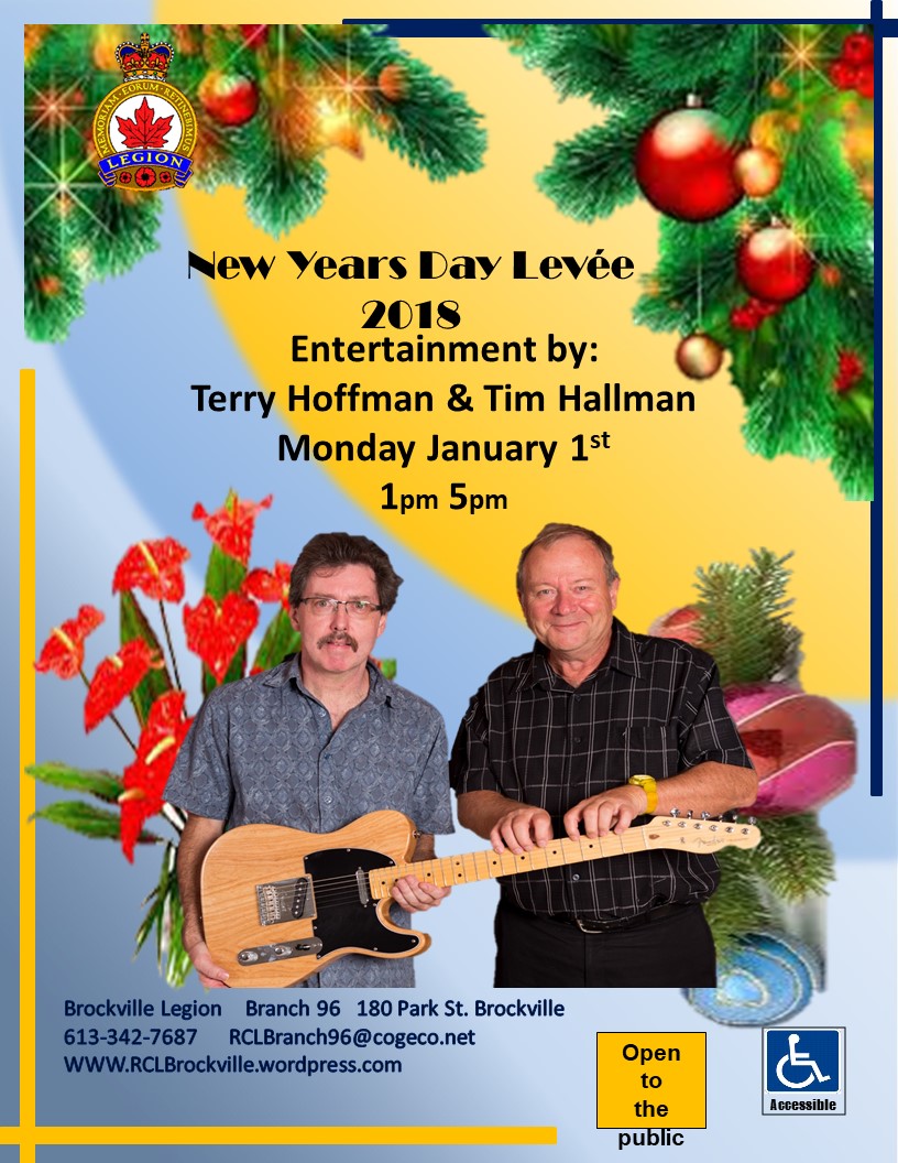 Brockville Legion is open noon to 6pm with entertainment by Hallman & Hoffman from 1-5pm in the auditorium.