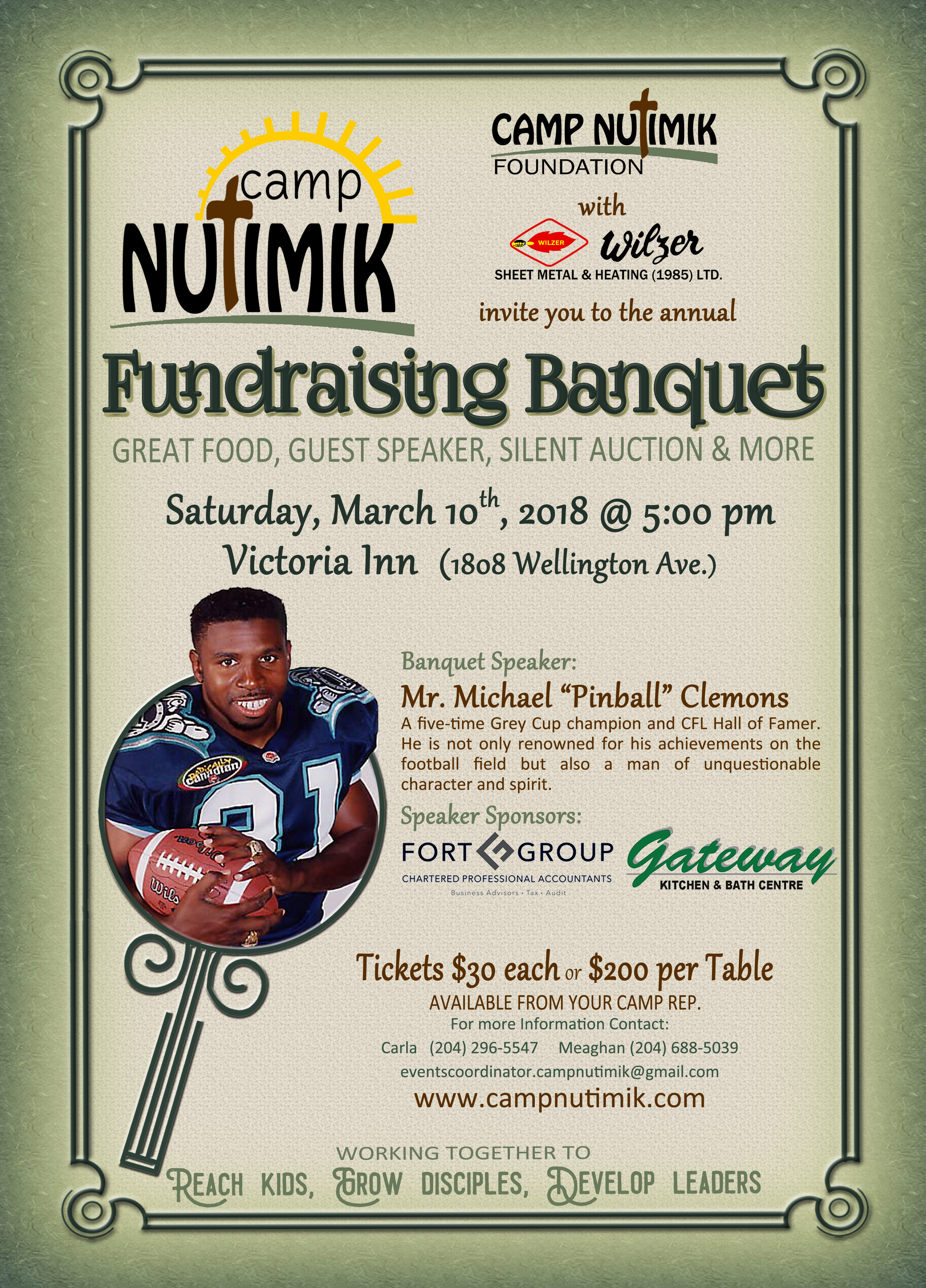 Camp Nutimik Fundraising Banquet presented by Wilzer Sheet Metal and Heating. Come support camp and enjoy a great meal, guest speaker and silent auction. Featuring Michael “Pinball” Clemons. Tickets $30