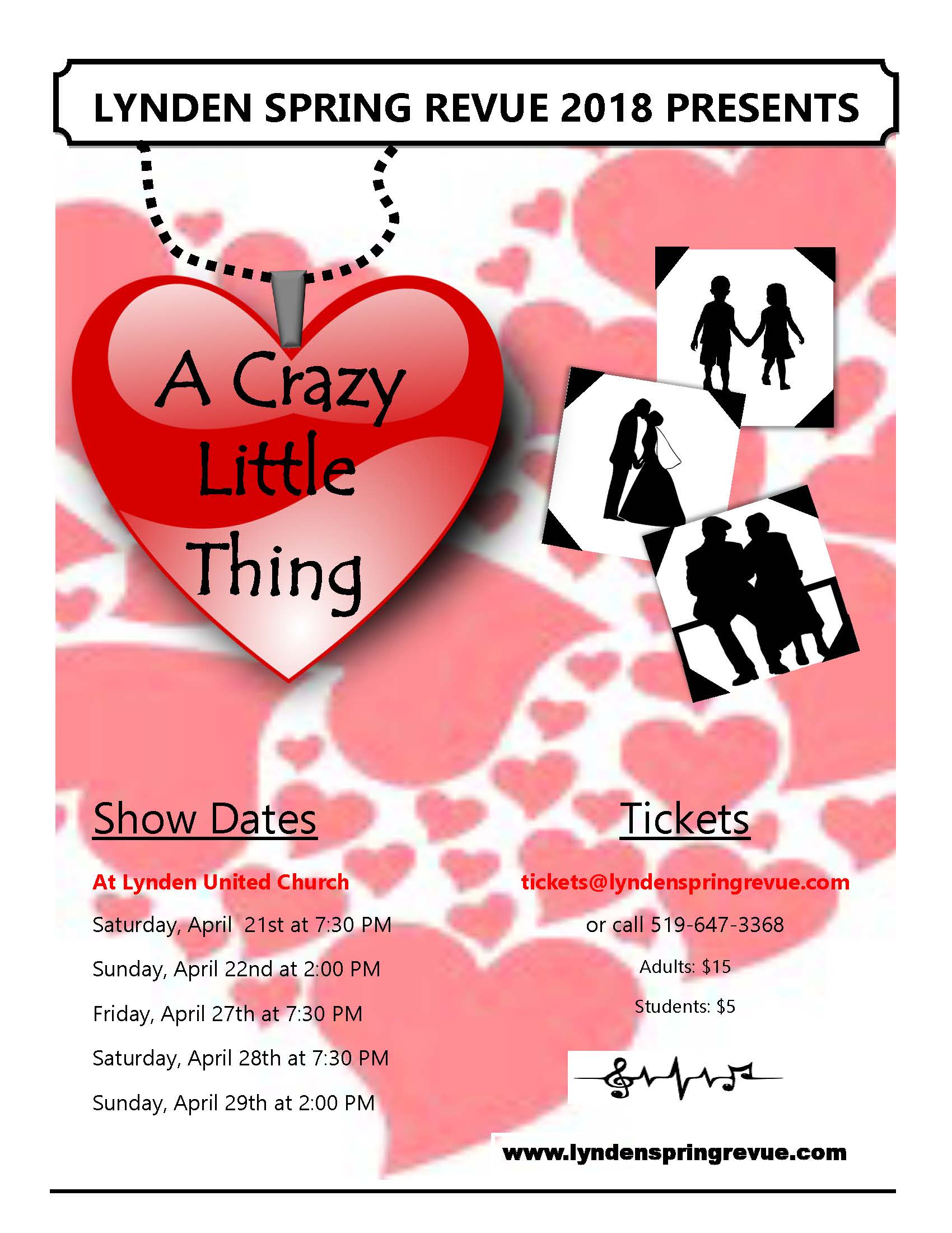 - tickets@lyndenspringrevue.com 519 647-3368 (Bill Osborne)
