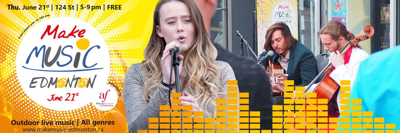 Make Music Edmonton is a free family-friendly live music event that showcases the diverse talent that our city has to offer. During Make Music Event, all along the 124th Street (from Jasper to 108 Ave), the business are transformed into sidewalk stages, showcasing Edmonton’s incredible cultural and artistic diversity in untraditional musical spaces. This popular event promotes live music, both amateur and professional, of all styles and genres.