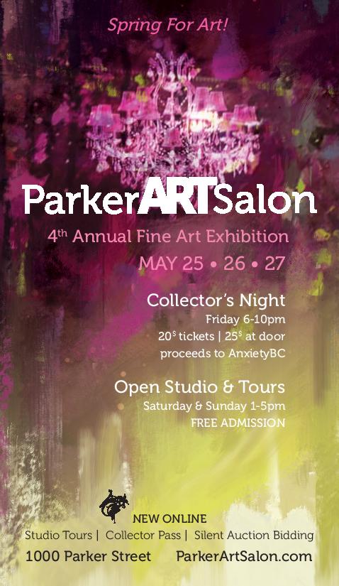 Now in its fourth year, the Parker Art Salon 2018 is one of Vancouver’s premier art events, a unique, salon-style exhibition showcasing the work of more than sixty fine artists at Vancouver’s iconic 1000 Parker Street Studios. Parker Art Salon takes place May 25 – 27, 2018, at 1000 Parker Street Studios. Open free to the public on Saturday, May 26 and Sunday, May 27 from 1:00 PM to 5:00 PM, the Parker Art Salon features artist talks, studio tours, live music, and more. Friday, May 25, 2018, the Parker Art Salon opens with the exclusive Collector’s Night event at 1000 Parker Street Studios. Guests will join other art lovers, enjoy first dibs on the latest art pieces, and celebrate with food and wine as our rugged, industrial space is transformed into an elegant gathering celebrating fine art. Tickets: $20 in advance at https://www.eventbrite.com/e/parker-art-salon-tickets-42884969097?aff=eac2 $25 at the door, $50 for a Collector’s Pass. Parker Art Salon 2018 Collector’s Night includes a Silent Art Auction (online bidding now open at http://www.parkerartsalon.com) and a Small Art Exhibition, with pieces priced at $200. Proceeds shared with http://www.AnxietyBC.com.