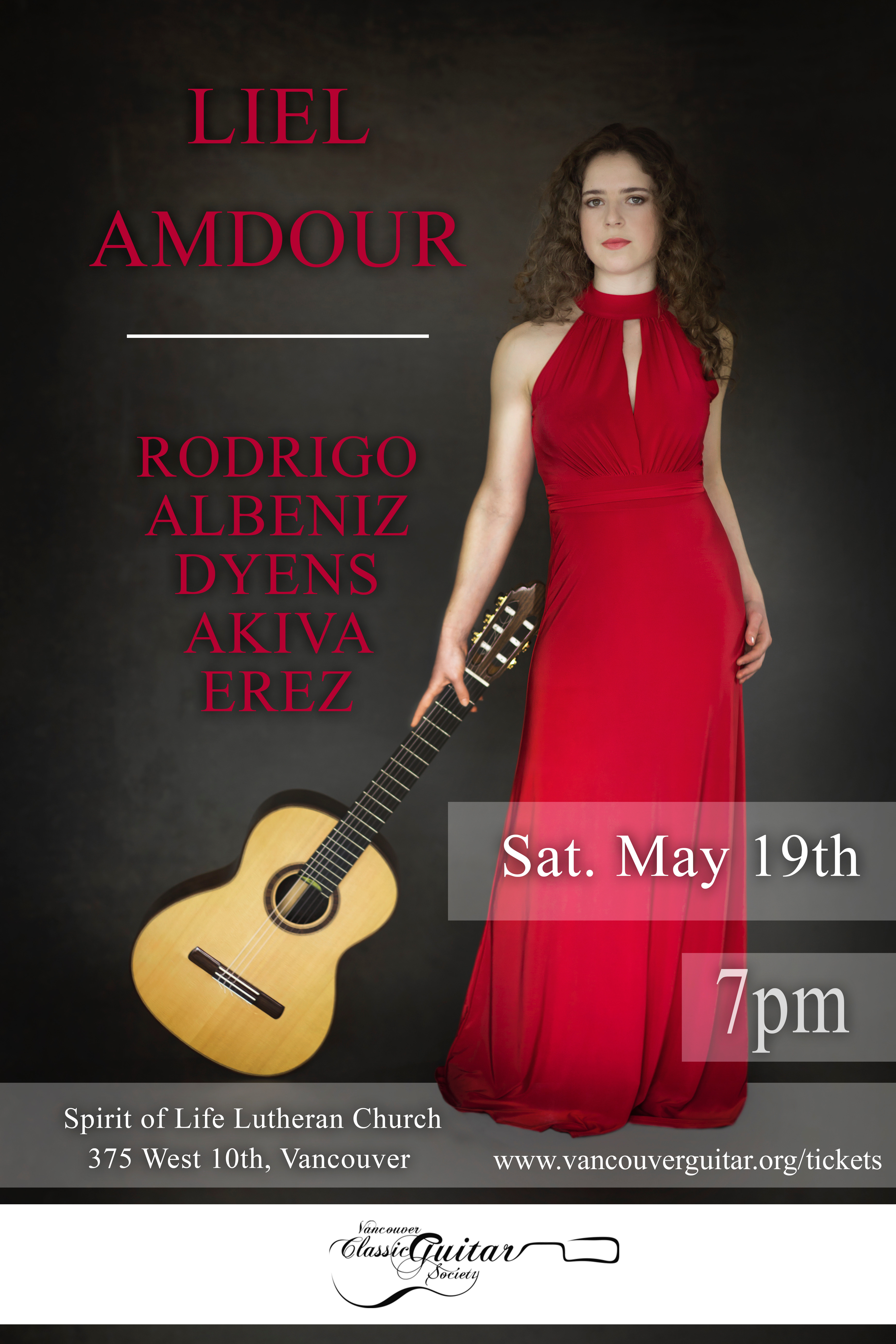 On May 19th, the Vancouver Classical Guitar Society is pleased to present LIEL AMDOUR, an up-and coming performer, as part of our Emerging Artist Series. A passionate ambassador of the classical guitar, Liel Amdour is dedicated to sharing the music of the guitar with audiences everywhere. Join us for an intimate concert of Spanish music and contemporary composers, including works by Rodrigo, Albeniz, Akiva, Torroba, and Dyens. Tickets $20 and under. Proceeds go towards supporting the artist and the VCGS.