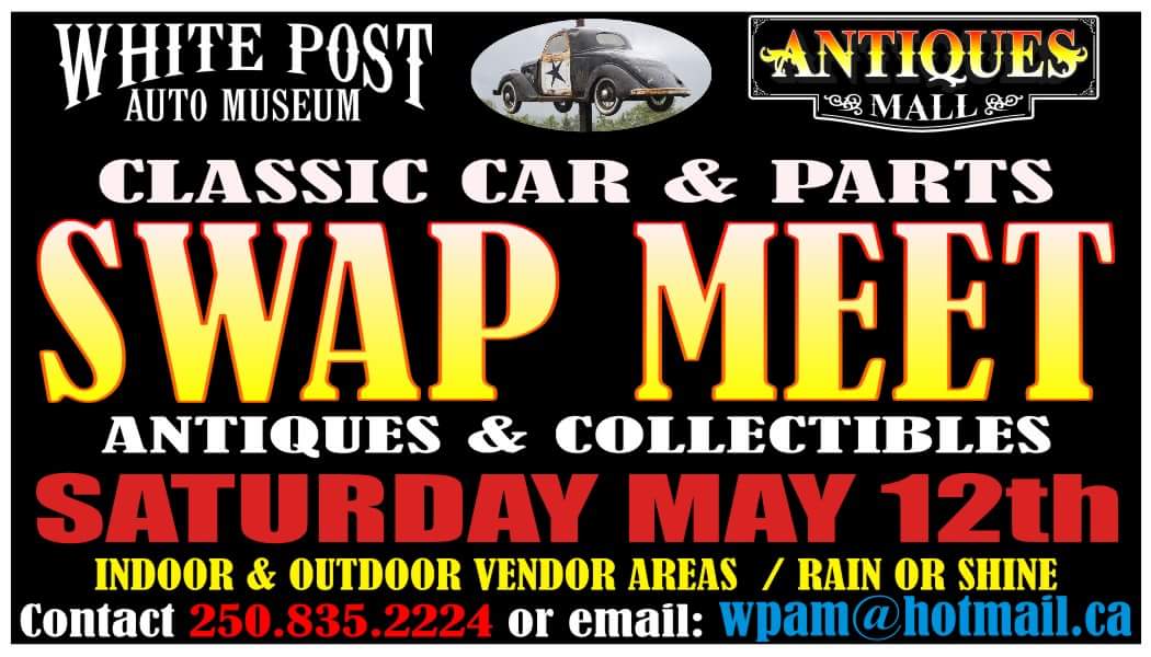 SWAP MEET Antique, Vintage, Classic, Muscle Car, Truck & Motorcycles and Parts. Antiques & Collectibles 50+ Vendors indoor & outdoor Sat. May 12th 8am-3pm $2 entry (kids under 10 free) No pets please Vendor spaces available. All info on website http://www.whitepostautomuseum.com
