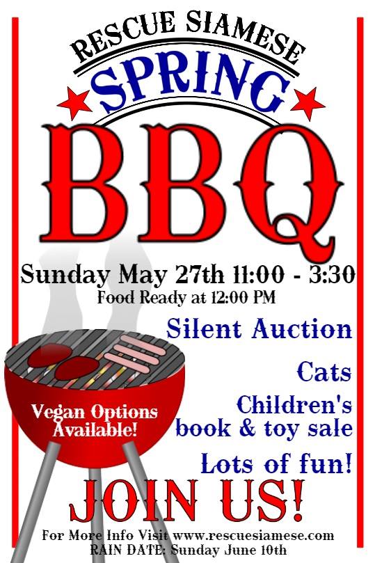 Rescue Siamese is hosting it’s annual BBQ and Adoption event. This year there will also be a large children’s toy sale. Come and join us for fun, prizes, food and adoptable cats!