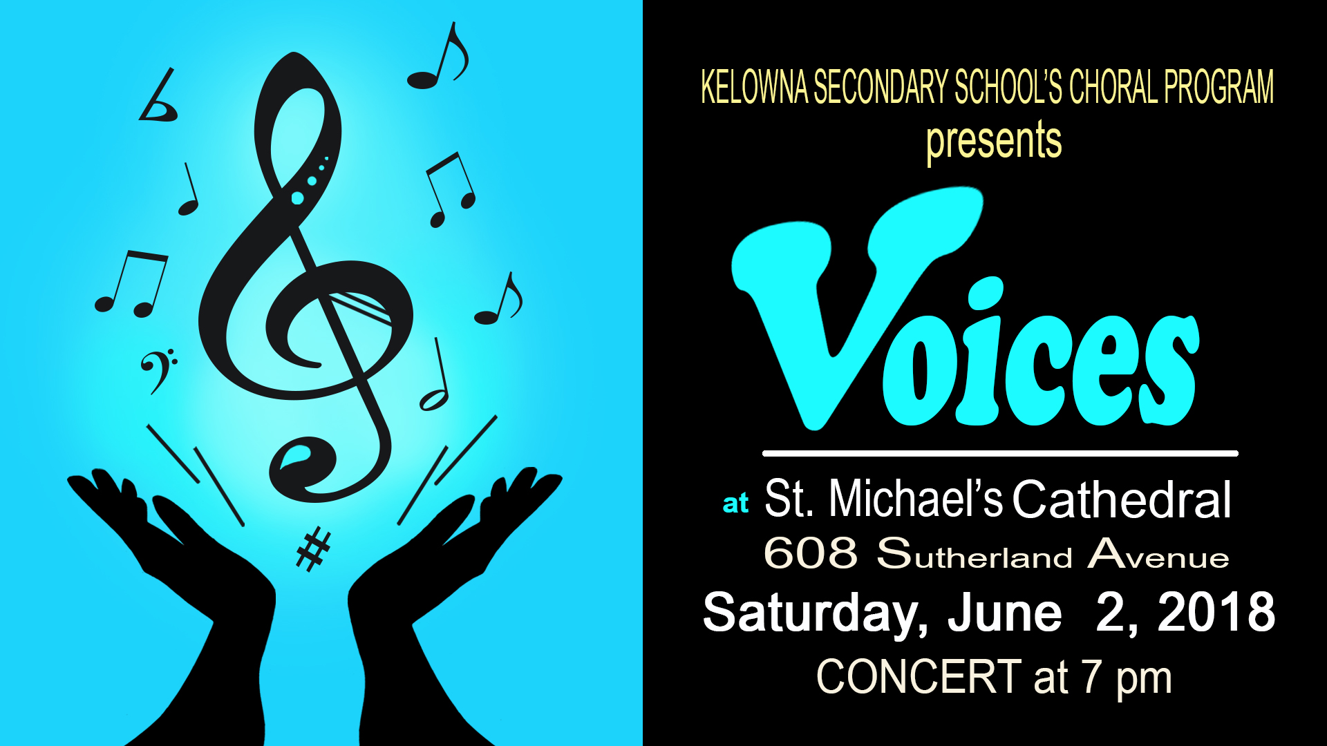 Featuring the vocal talent of KSS’ Ladies Chamber Choir, Men’s Chamber Choir, Mixed Chamber Choir and Vocal Jazz Ensemble. Solos and Duets will also be performed by students as well!! Accompaniment by Elizabeth Wolks on Piano, and Christine Moore on flute. There’s a genre for everyone – from classical, to broadway, world music and jazz! Music Director: Sheila French. Admission by donation; Proceeds to KSS Music Department and Central Okanagan Community Food Bank.