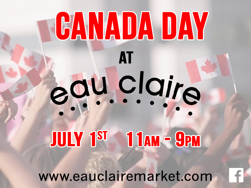 Come celebrate Canada Day with a free all-day party at Eau Claire Market! There will be free ice cream (while supplies last), live entertainment, artisan market, children’s crafts, face painting, airbrush tattoos, petting zoo, magicians and much more! Plus, for the adults, Garage Sports Bar will be hosting a licensed area with live music until 9:00 pm.