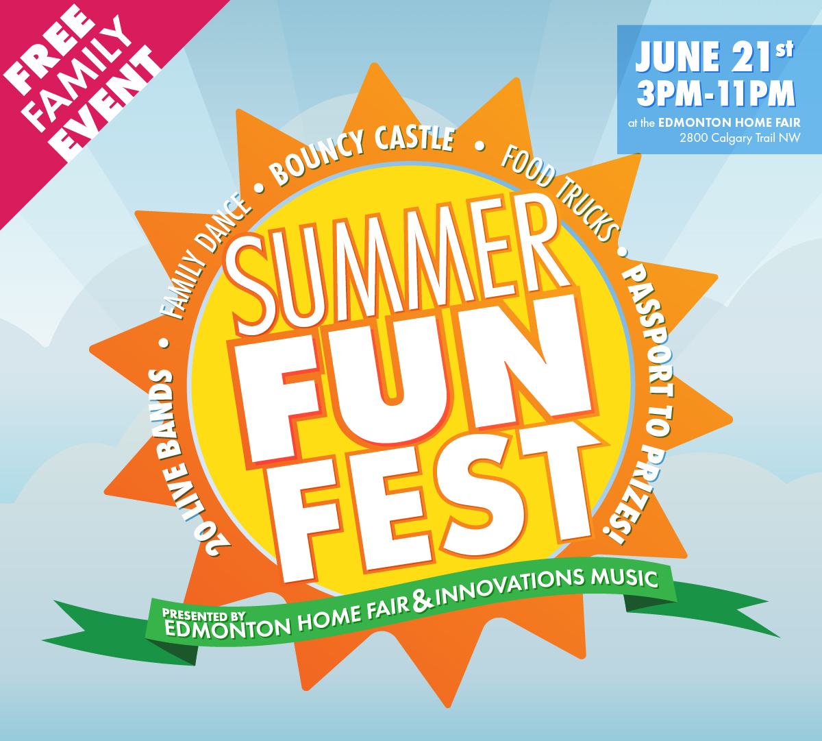 You and your family can kick off the summer right with the Edmonton Summer Fun Fest – presented by Edmonton Home Fair & Innovations Music! Celebrate the Solstice with Edmonton’s best local talent! This FREE event will feature live music & stage shows, a giant bouncy castle, food trucks, hourly prize draws & MUCH MORE! Join in the fun with a sponsored family dance and games hosted throughout the Edmonton Home Fair. PLUS don’t miss the chance to meet some of your favourite costumed super-heroes and princesses! We’d love to see you there!