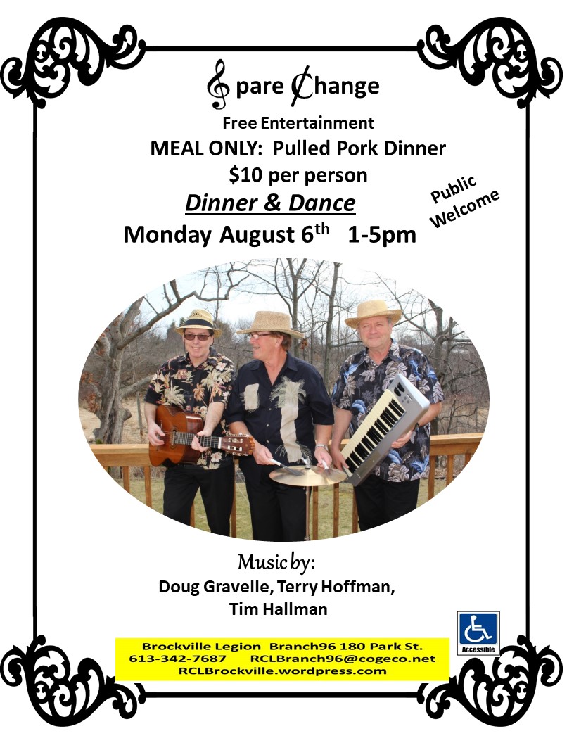 “Spare Change” entertains from 1-5pm in the lower lounge of the Brockville Legion.