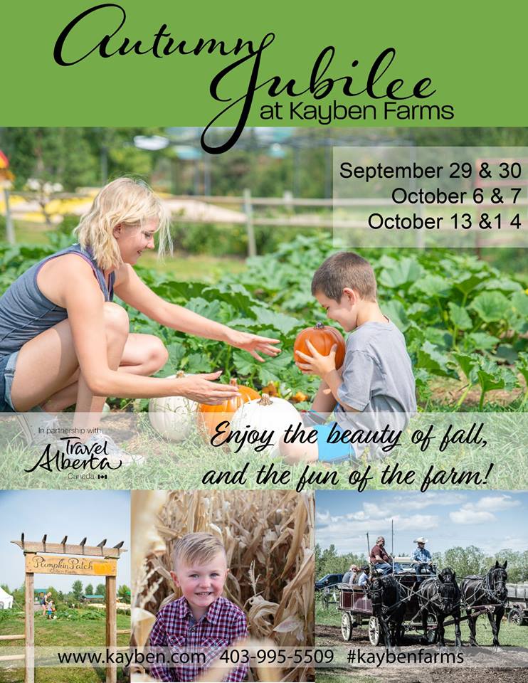 Autumn Jubilee at Kayben Farms Enjoy the beauty of fall and the fun of the farm. September 29&30, October 6&7, and October 13&14. Special demonstrations, family photoshoots, horse drawn wagon rides, pumpkin painting and craving, crafts, music and more! Purchase tickets online at a discounted rate. September 29 & 30 – Kids & Critters Pony demonstrations by Horseplay Ranch adventures, 4H demonstrations, horse drawn wagon rides, face painting and more.