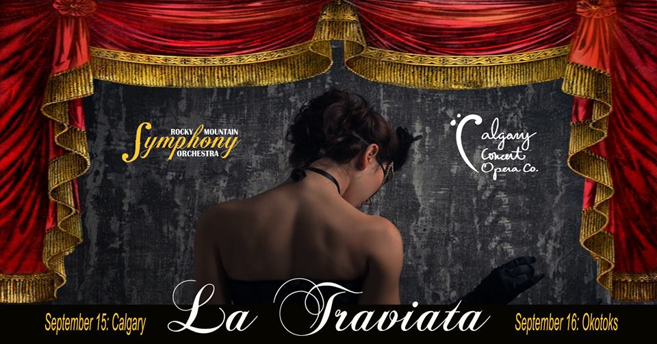 Calgary Concert Opera Company and Rocky Mountain Symphony Orchestra come together to present: La Traviata by Verdi! September 15th at First Baptist Church – 1311 4 St SW at 7 pm September 16th at Okotoks United Church – 43 Riverside Dr at 3 pm Featuring: Violetta: Kathleen Morrison (Calgary) Violetta: Linda Miller (Okotoks) Alfredo: Dan Rowley Germont: Adam Brousseau Flora: Barbara King Annina: Cindy MacDonald Gastone: Valentin Borsu (Calgary) Gastone: Oliver Munar (Okotoks) Dottore & Barone: Ian Fundytus Marchese: Paul Lloyd Guiseppe: Stuart Lloyd Commissioner: Chad Ruston Foothills Philharmonic Opera Chorus (Tim Korthius, Chorusmaster) 12 Musas Flamenco (Anastassiia La Musa) This concert will be accompanied by 16 members of the Rocky Mountain Symphony Orchestra. Tickets: https://primetix.ca/bands/ccoc/la-traviata/ For more information please contact Barbara King at mail@calgaryconcertopera.com