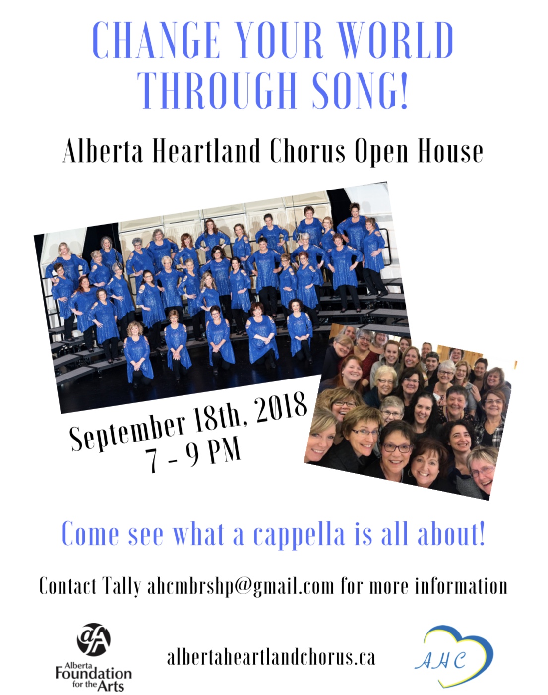 - ahcmbrshp@gmail.com 780-433-7168 (Alberta Heartland Chorus)