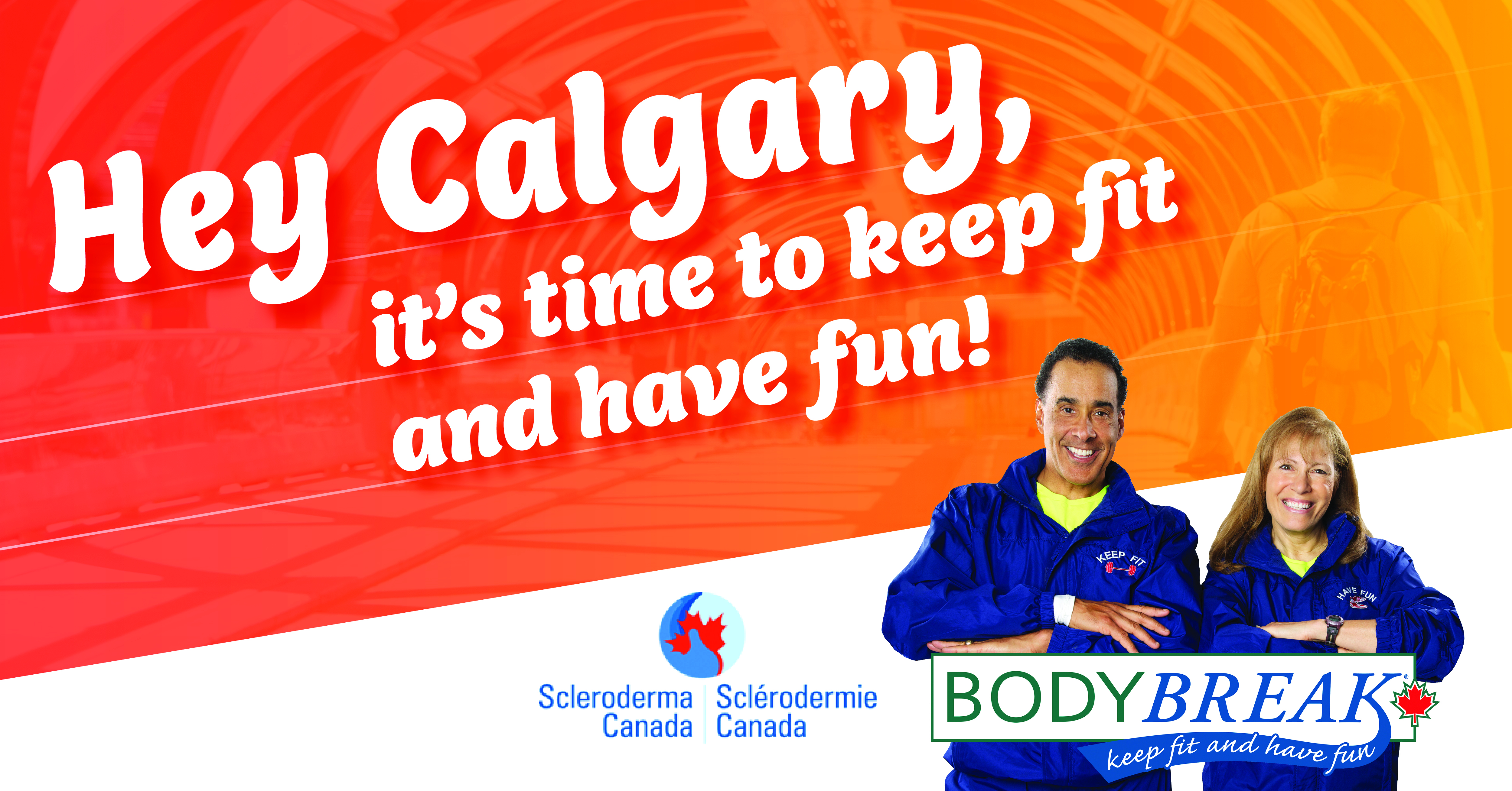 Scleroderma Canada is kicking off its 18th Bi-annual conference in Calgary with the opportunity for everyone to keep fit and have fun! We want you to join us! Canadian fitness icons Hal Johnson and Joanne McLeod of Body Break will lead members of the public in a stretch and talk on healthy living to help start the conference. Participants will have the opportunity to meet and have their photo taken with Hal and Joanne, and learn about scleroderma, the most common rare disease in Canada. Friday, September 21st 11:30AM – 12:30PM Eau Claire Festival Market Square, outside the Gray Family Eau Claire YMCA This event is free and open to everyone. See you there!