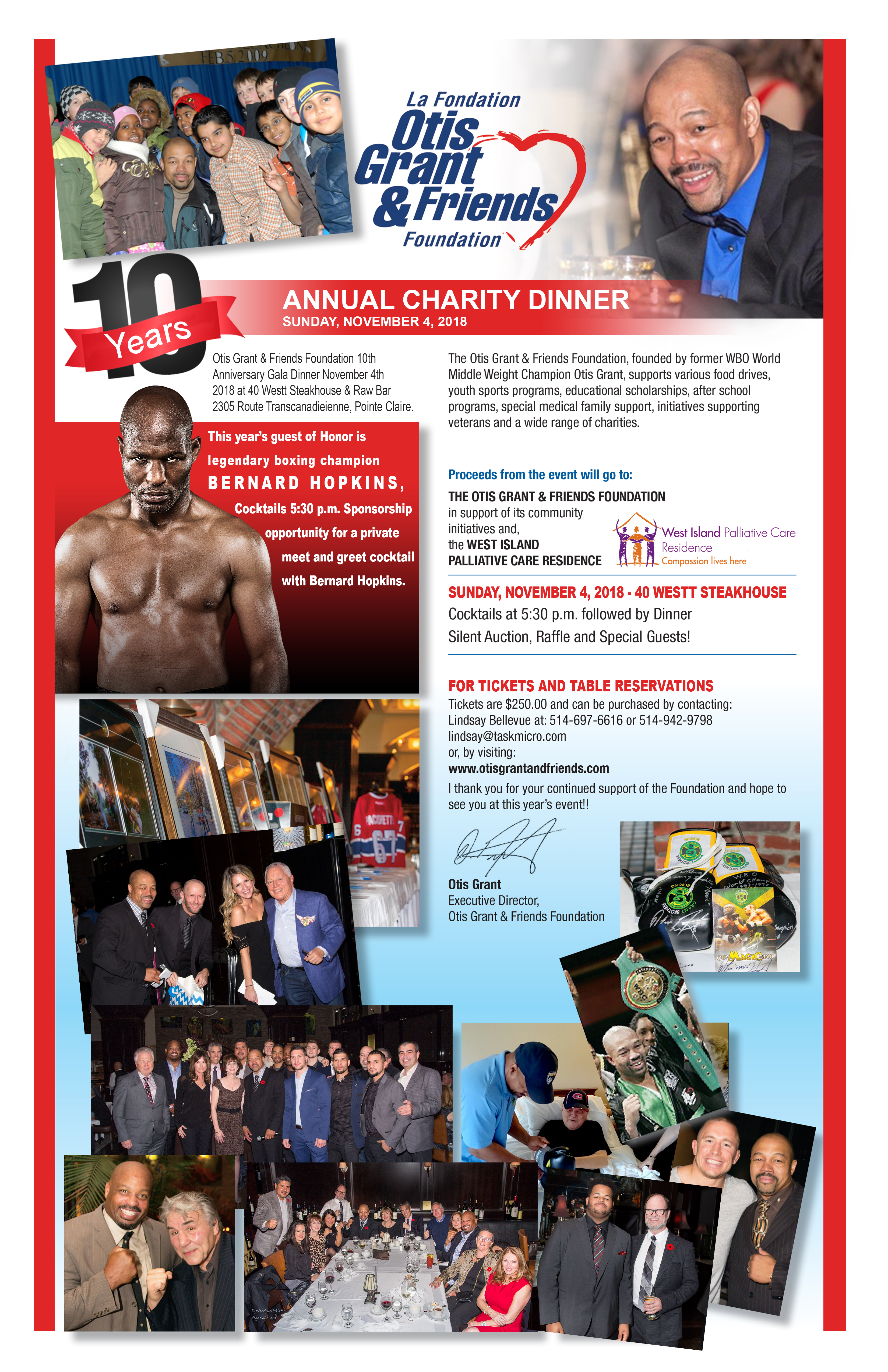 Gala Dinner in aide of The West Island Palliative Care Residence. This year’s guest of honour legendary boxing champion Bernard Hopkins.
