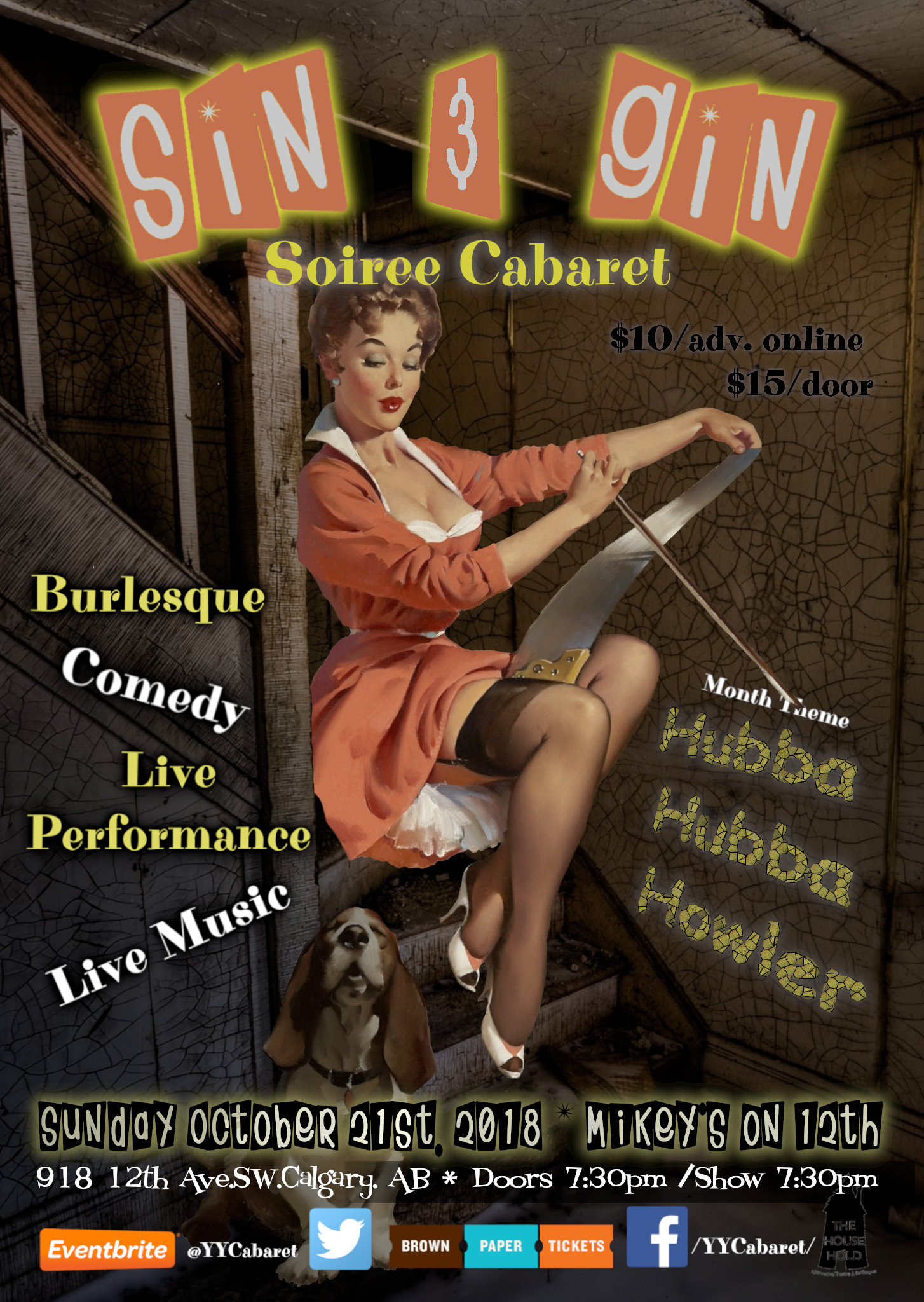 Sin & Gin is filled with Music, Comedy, Burlesque, Dance, Cabaret and more! This month be prepared to be “HYPNOTIZED”! That’s right for the first time ever Sin & Gin is bringing you one of Calgary’s best Hypnotist! Chris Barry! Get ready for ‘Hubba Hubba Howler’! This is a perfect evening for your event – Birthdays, Anniversaries, Bachelor/Bachelorettes, and anything that you want to do to take a break and escape. Be ready to partake of the amazing talent that Calgary and Alberta has to offer. This month we have Live Music, Burlesque, a Hypnotist and Cabaret. Book online to reserve your front seat! Or dare to take a chance at the door! Stay tuned to the event page as we share with you who is gracing the Sin & Gin stage for our ‘Hubba Hubba Howler’ Sunday October, 21st, 2018 – Mikey’s on 12th, 918 12th Ave Sw, Calgary AB Doors 7:00pm – Show 7:30 – 9:30pm Tickets: $10 adv – online or Mikey’s on 12th – $15 door – https://sinandginhubbahowler.bpt.me https://www.eventbrite.ca/e/sin-gin-soiree-cabaret-hubba-hubba-howler-tickets-50842209417