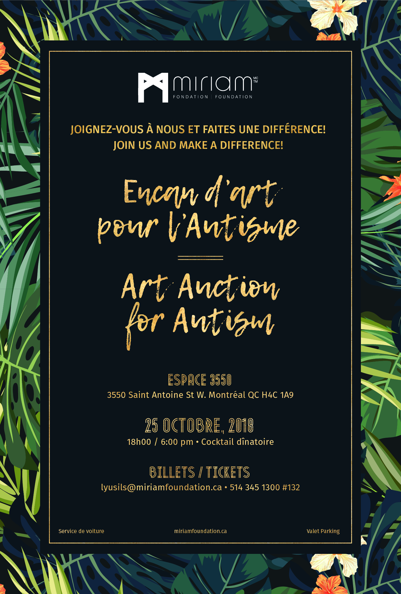 The Miriam Foundation 8th Art Auction for Autism will take place on October 25th (Thursday) at Espace 3550. A glamorous evening, with unique art pieces and amazing food for a great cause. The proceeds from this year’s event will go towards our Early Intervention Programs and we hope that you will help us succeed in our mission. Our 7th Art Auction for Autism in 2017 had an extraordinary success and raised $158,000. Get your tickets at: https://www.miriamfoundation.ca/en/events/22-art-auction-for-autism.html