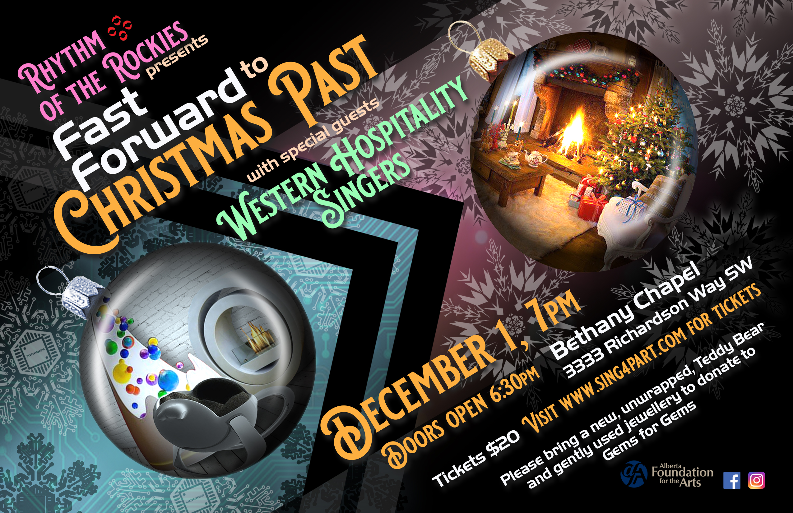Rhythm of the Rockies will take you on a musical journey from far in the future to days gone by and help you find that “Warm and Fuzzy” feeling this holiday season Special guests • Western Hospitality Singers • A group of 40 guest singers who joined Rhythm of the Rockies for an 11 week “a cappella” learning experience Parking- in front and behind the Chapel Please bring a new unwrapped Teddy Bear and gently used jewellery to donate to Gems for Gems.