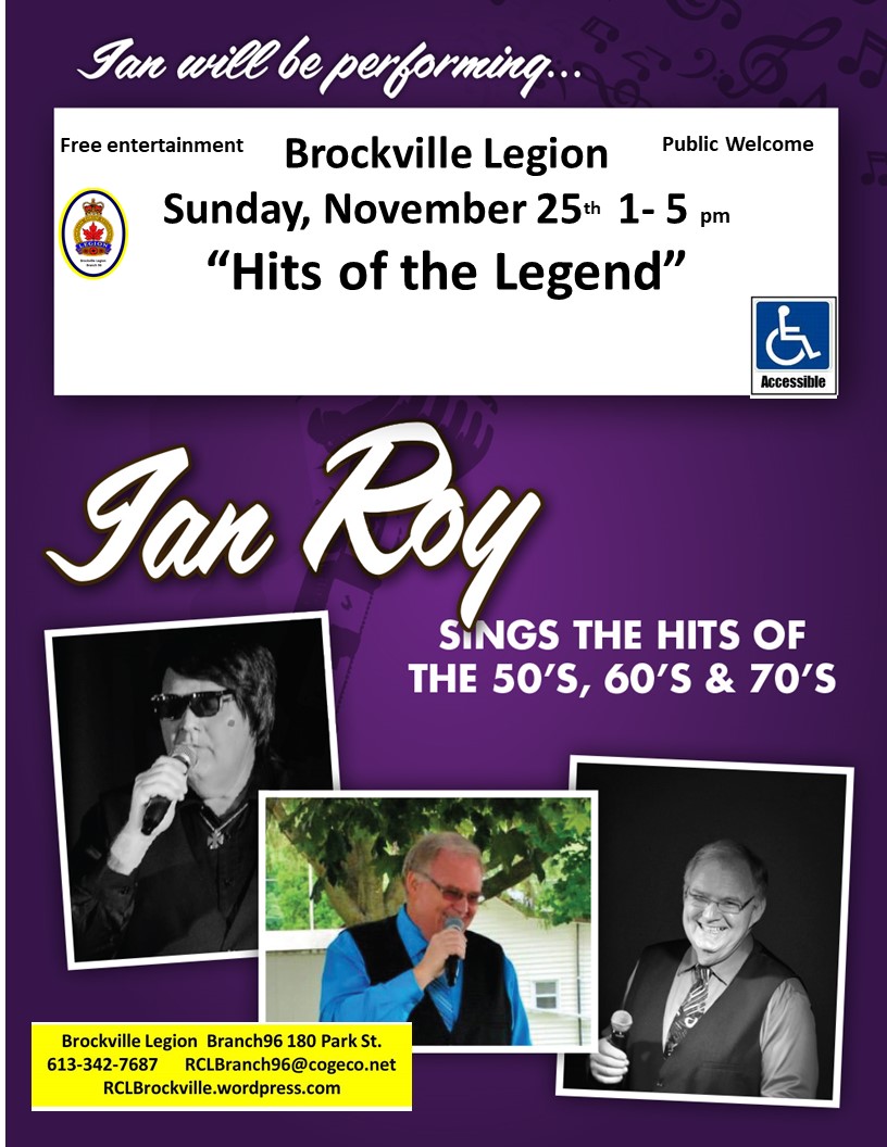 Ian Roy entertains from 1-5pm in the lower lounge of the Brockville Legion.