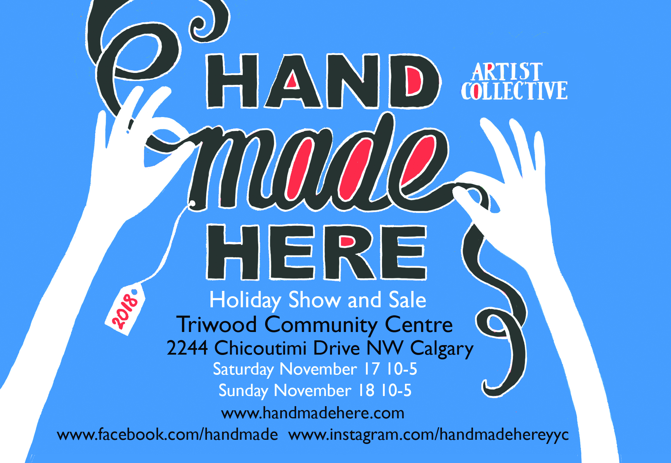Looking for local, original, unique, special? Please join us for the 13th annual sale from Handmade Here Artist Collective. The sale takes place on November 17 and 18, 2018, in Calgary’s Triwood Community Hall. For those who are looking for distinctive gifts for Christmas, the sale offers a wide range of handcrafted art including painting, printmaking, jewelry, textiles, blown and fused glass, pottery, metal, wood and paper. This year the line-up of 25 artists is outstanding – Alice Helwig /Anna Bilek /Anne Ormerod /Barbara Rumberger /Brooke Brampton /Connie Cooper /Connie Pike /Eve deMoissac /Jennea Frischke /Jill Nuckles /Jim Etzkorn /Joan Irvin /Joanie Chisolm /John Smith-Jones /Karen Scarlett /Karin Thorsteinsson /Lisa McGrath /Mindy Andrews /Rob Froese /Sandra Civitarese /Stephen Dozois /Steven Pulvermacher /Susan Kristoferson /Susanah Windrum /Taygan Crapo November 17 & 18, 2018 10 AM – 5 PM Triwood Community Association 2244 Chicoutimi Dr NW Free parking, refreshments and draw