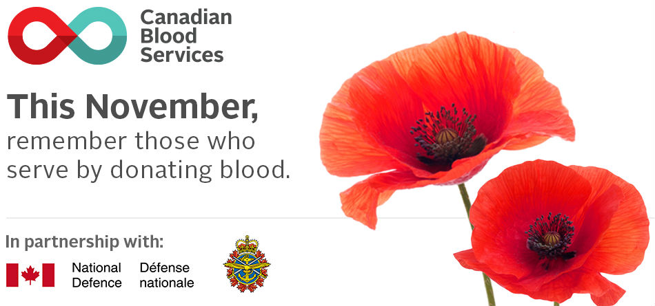 *Donating blood is a meaningful way to commemorate Remembrance Day, while serving your country by helping hospital patients across Canada.