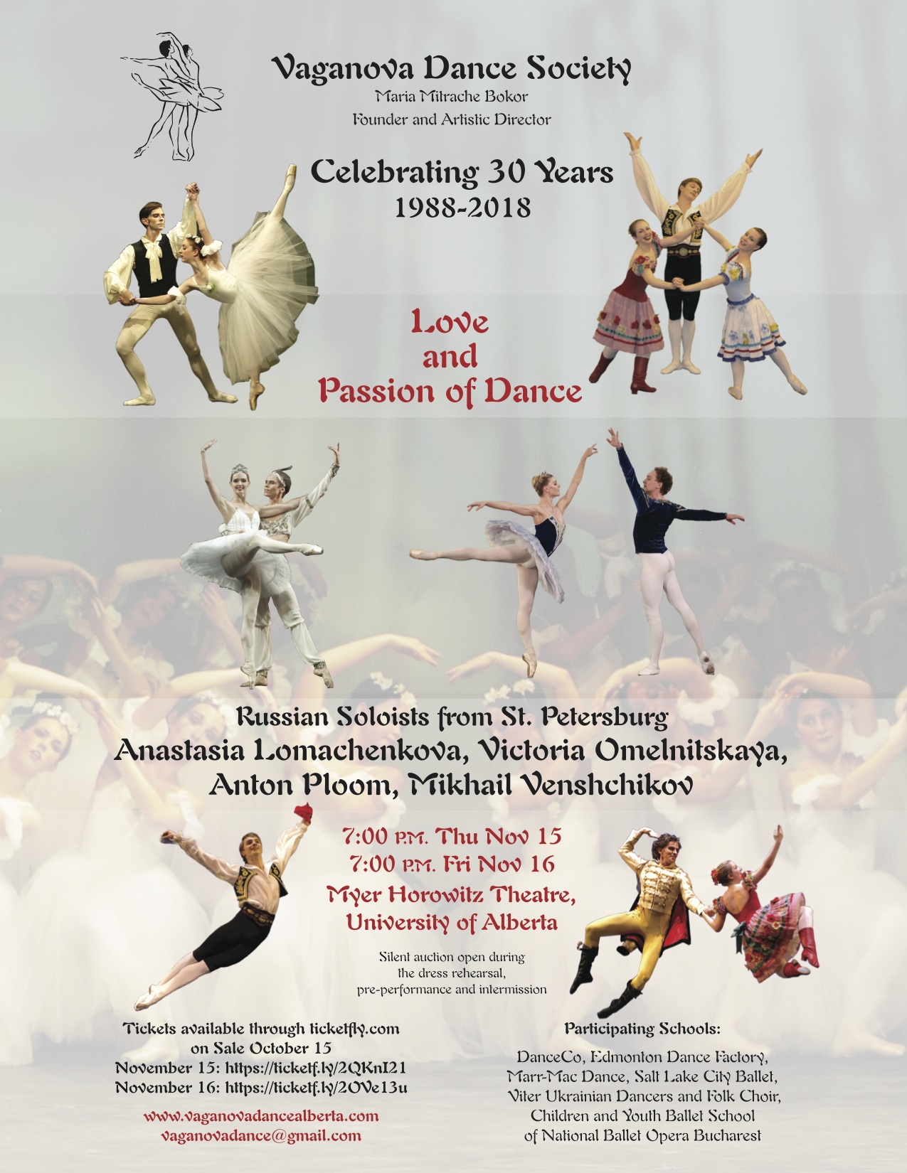 This year marks the 30th Anniversary of the Vaganova Dance Society! To celebrate, we will be having performances by Russian soloists from St. Petersburg Russia, Salt Lake City Ballet, Viter Ukrainian Dancers and Folk Choir as well as local Edmonton dancers.