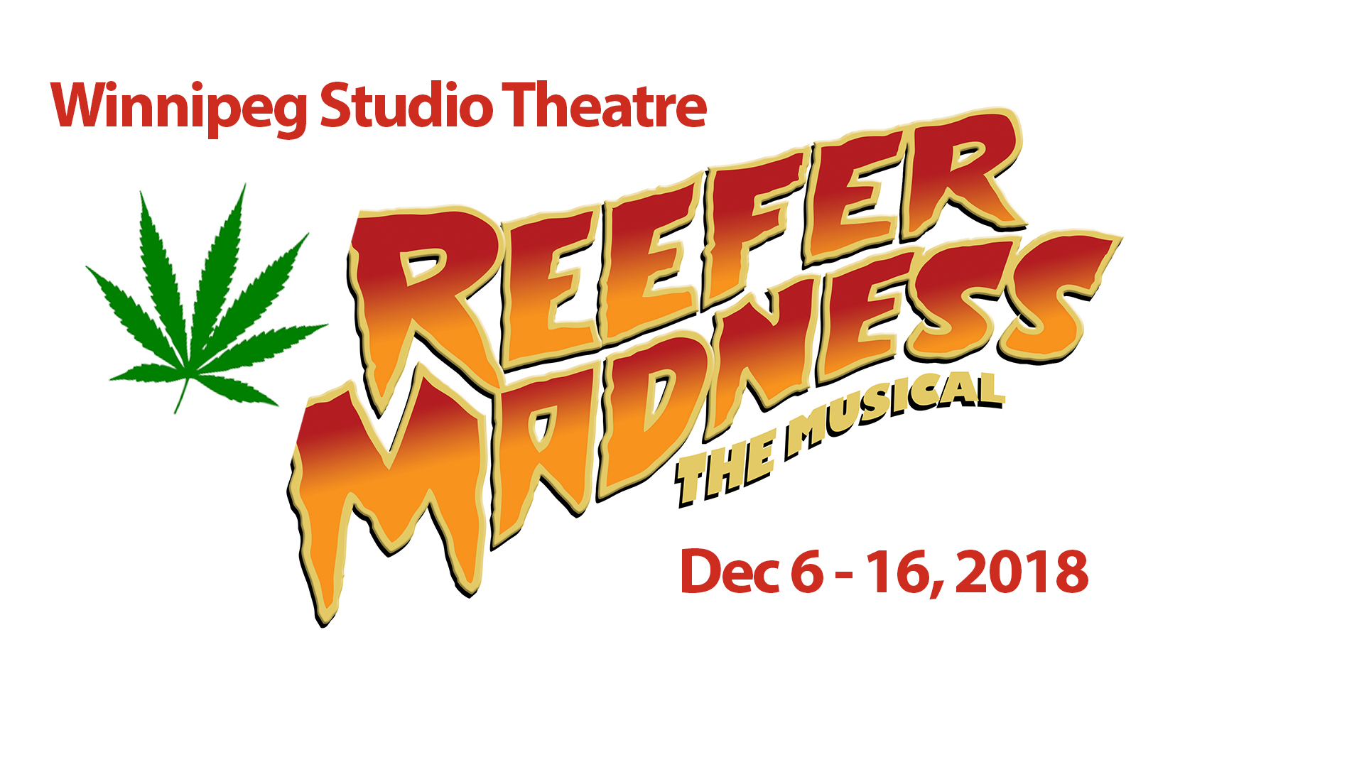 Inspired by the original 1936 cult film of the same name, this outrageous musical comedy takes a tongue-in-cheek look at the hysteria cased when clean-cut kids fall prey to marijuana, leading them on a hysterical downward spiral filled with evil music, sex and violence. Suitable for 18+ Sin! Insanity! Debauchery! Don’t miss this musical marijuana satire complete with munchies! Showtimes: Dec. 6, 8:00 Dec. 7, 8:00 Dec. 8, 8:00 Dec. 11, 8:00 Dec. 12, 8:00 Dec. 13, 8:00 Dec. 14, 8:00 Dec. 15, 8:00 Dec. 16 2:00