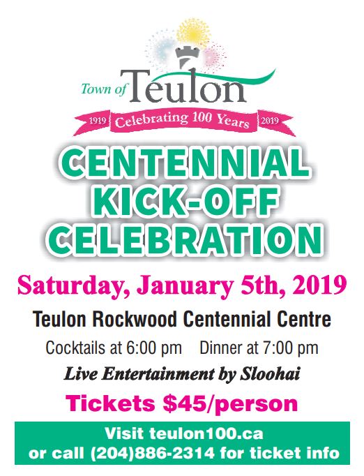 Banquet and Live Band to kick-off Teulon, MB’s Centennial year in 2019!