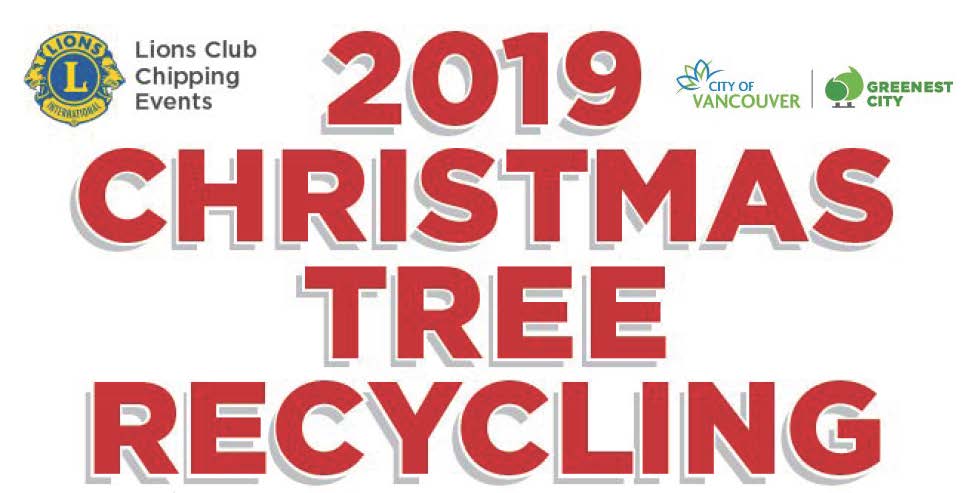 The City of Vancouver, in partnership with the Lions Clubs, is hosting a tree chipping event for 2019. The details are as follows: Date: January 5-6, 2019 Time: 10:00 am to 4:00 pm Locations: • Kerrisdale Community Ice Rink parking lot • Kitsilano Beach parking lot • Sunset Beach upper parking lot • Trout Lake Community Centre parking lot *Please remove all decorations and tinsel. *Donations of cash and non-perishable goods will be accepted and distributed to local charities. For more information, please visit vancouver.ca/christmastree .