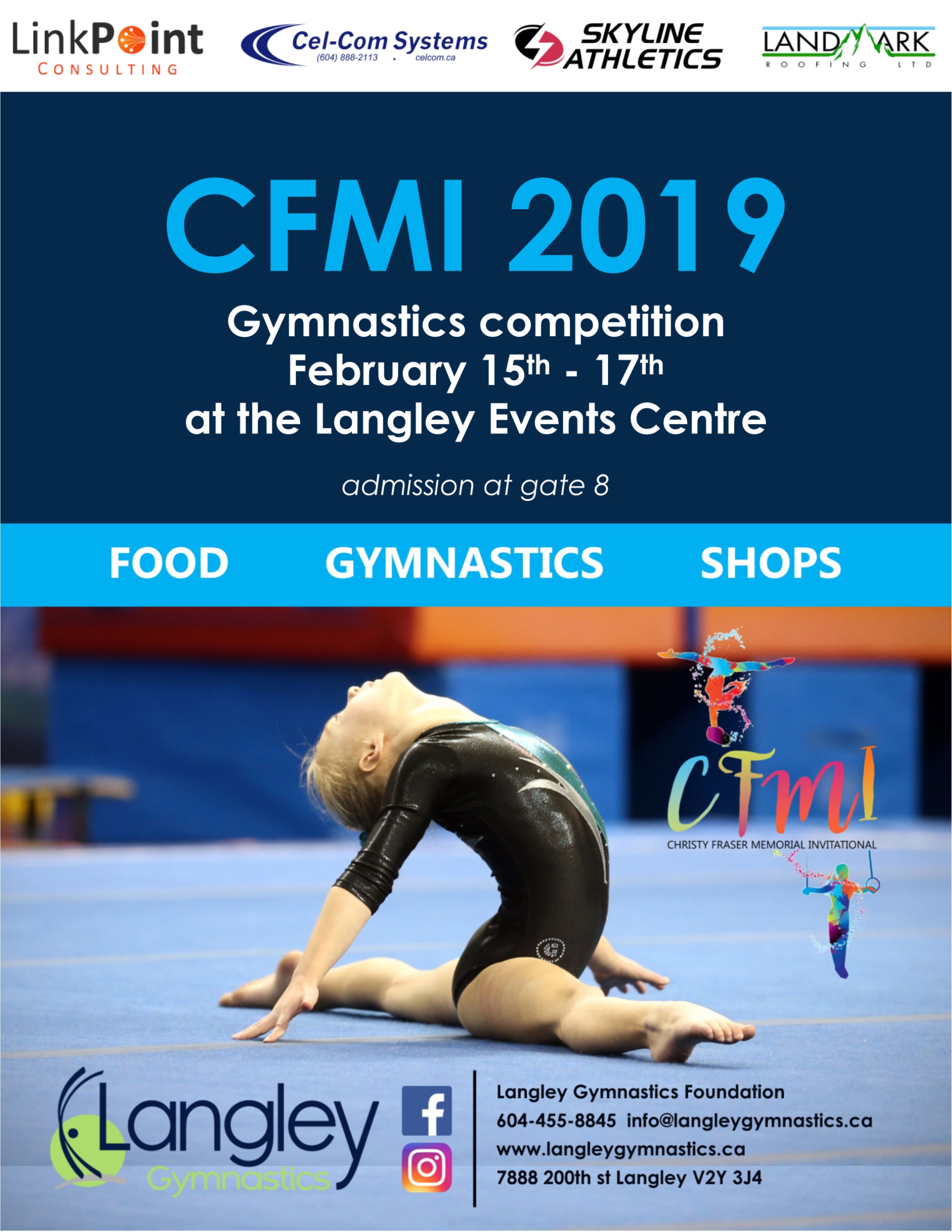 This February 15th – 17th, come watch over 600 competitive gymnasts at Langley Gymnastics’ Christy Fraser Memorial Invitational competition. Enjoy a weekend of food, vendors, a silent auction, and gymnastics!