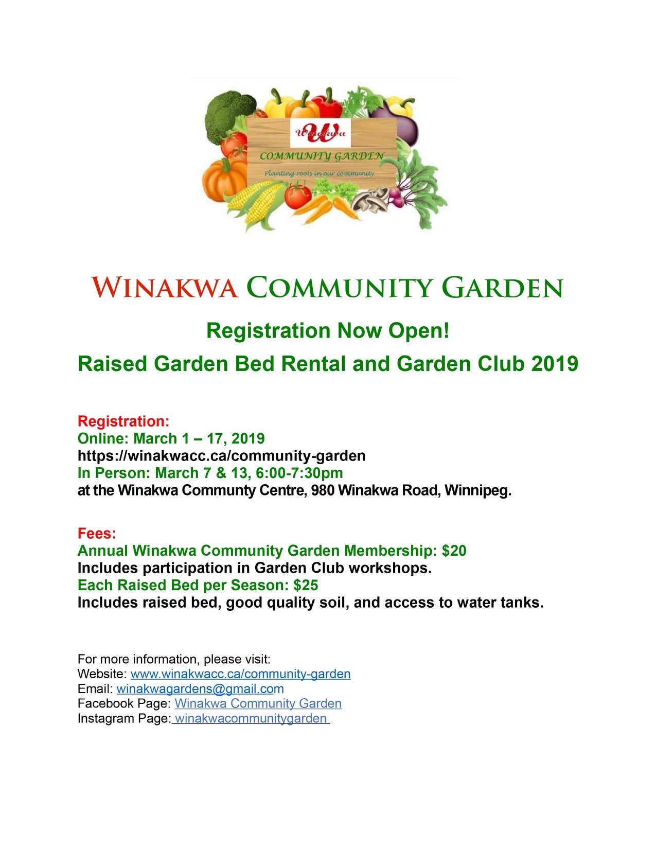 Registration: March 1-17, 2019 https://winakwacc.ca/community-garden