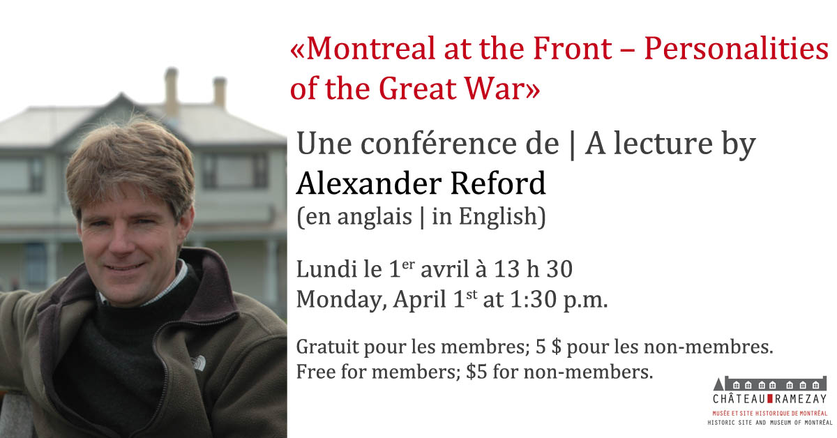 Lecture by Alexander Reford : Montreal at the Front – Personalities of the Great War