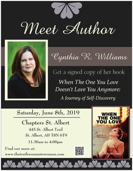 Come meet local author Cynthia R. Williams and get a signed copy of her book “When The One You Love Doesn’t Love You Anymore”. Find out more at http://www.thetruthwomantowoman.com