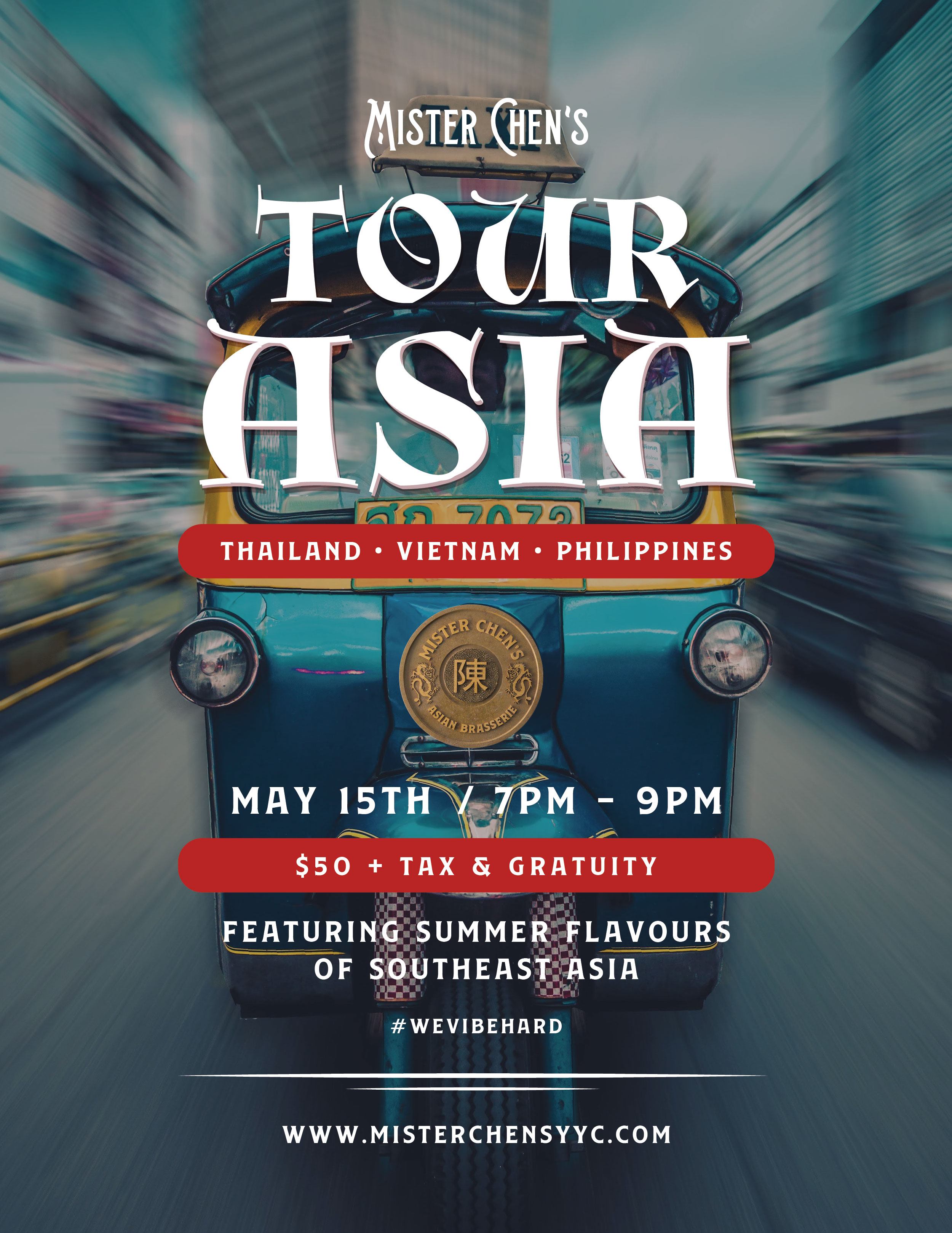 Mister Chen’s kicks off their Tour of Asia dinner series this month! Guests will be introduced to the dynamic flavours of Thailand, Vietnam and the Philippines through a plated dinner that includes a dish from each region while being challenged to make a dipping sauce that accompanies each dish. This interactive and educational dinner will run every second month to give food enthusiasts the opportunity to explore Asian food and culture, while showcasing chef Shaun Desaulniers diverse culinary skill set and chef Shamir’s beverage pairing suggestions.