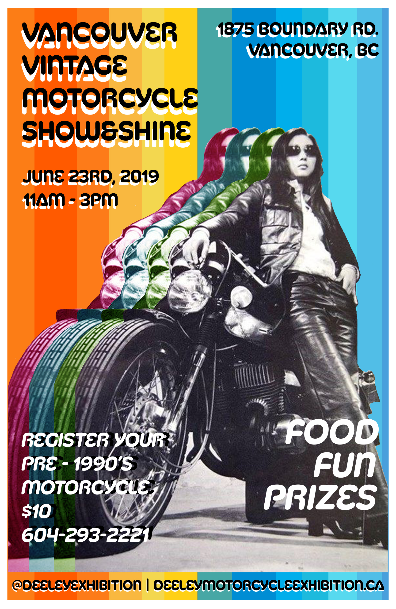 Do you have a Vintage motorcycle you’d like to show off? Love antique motorcycles? Whether you ride or not, come down June 23rd for the 6th annual Vancouver Vintage Motorcycle Show & Shine! Select rare motorcycles from the collection will be on display as well as several vendors for you to check out. Bikes, food, and a good time to be had by all! $10 bike registration gets you a free lunch as well as entry in to a draw to win one of three prizes! For more information or to pre-register, call us at 604 293 2221 or email info@DeeleyExhibition.ca