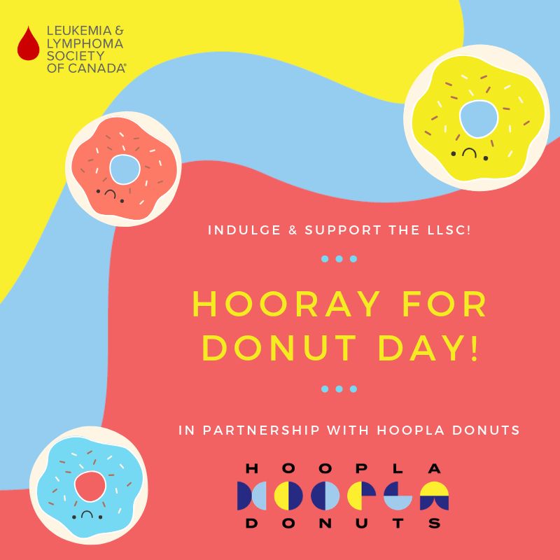 Friday, June 7th is National Donut Day! To celebrate the day, Hoopla Donuts will donate $1 from the sale of every donut to The Leukemia & Lymphoma Society of Canada to help support blood cancer cures.