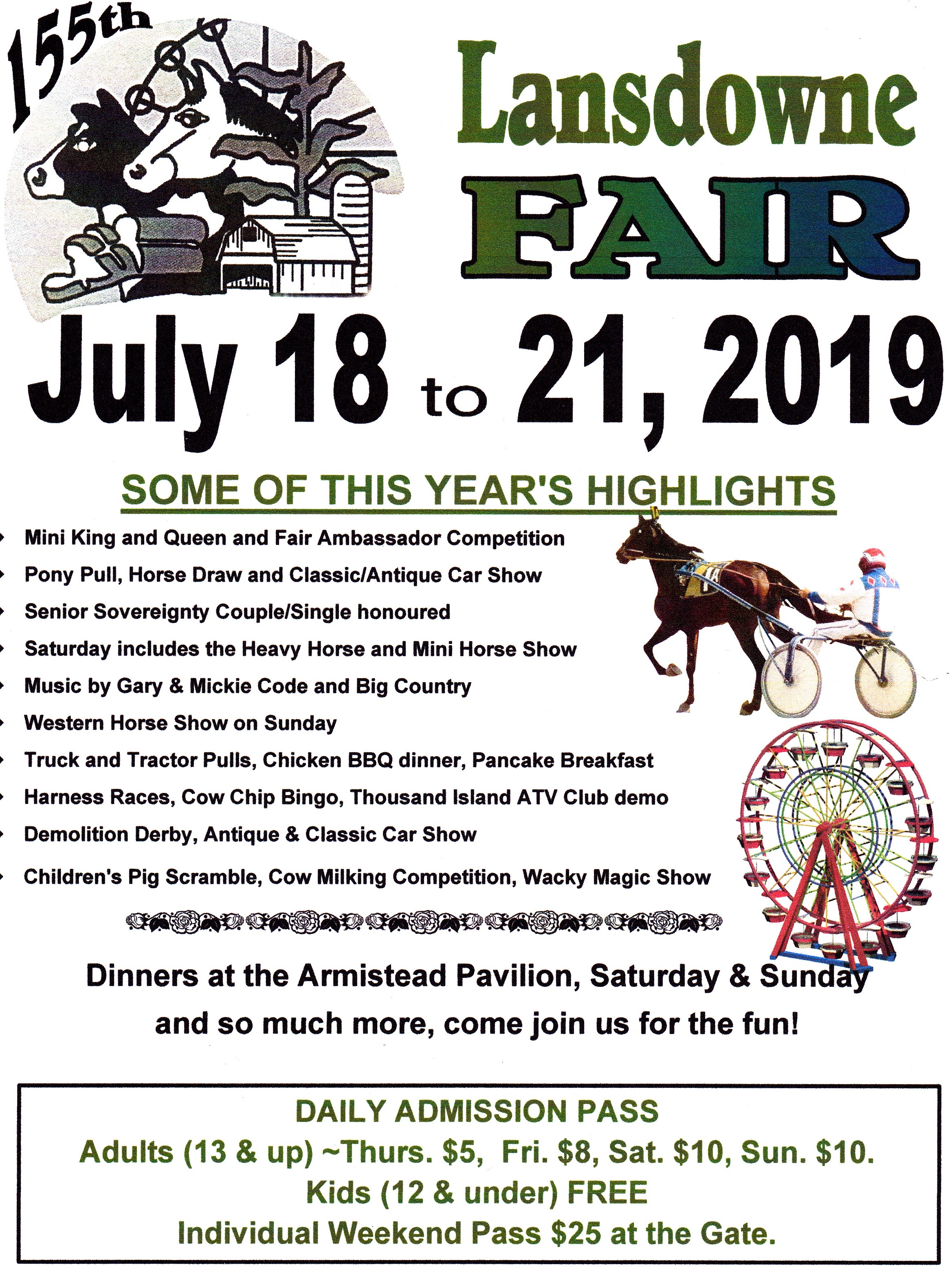 155th Lansdowne Fair – July 18-21, 2019 at the Lansdowne Fairgrounds, 1186 Prince St, Lansdowne, ON.