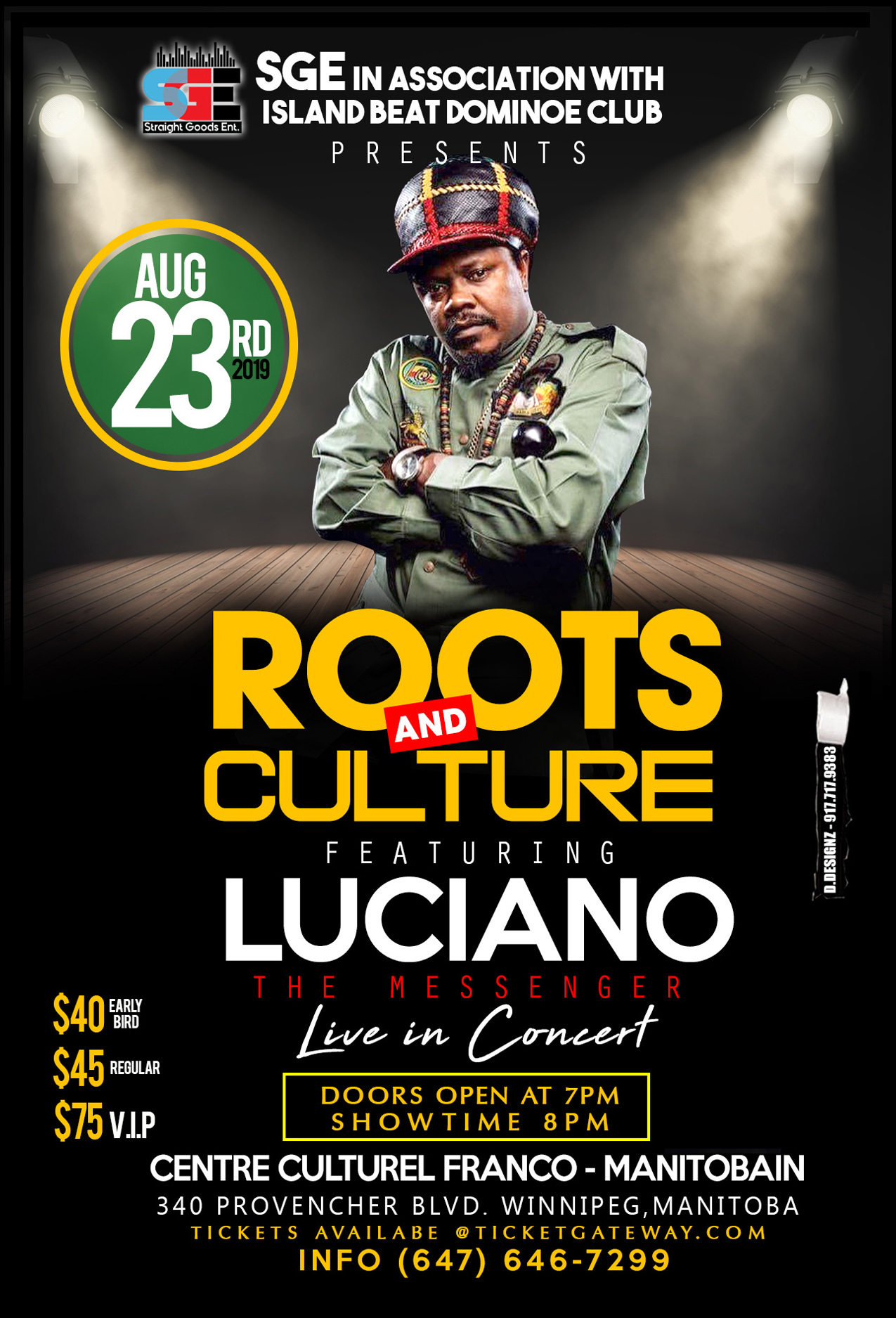 International roots reggae artist Luciano will be performing live in Winnipeg Friday August 23, 2019 at the Centre Culturel Franco-Manitobain located at 340 Provencher Blvd. Luciano will be performing all his hits alongside a live band. The concert will also feature local singer and band. The party continues until 2am with DJ Ninjakin Sound. Doors open at 7pm. Come and enjoy a nice evening filled with live entertainment straight from the island of Jamaica. Tickets are available at ticketgateway.com Food and beverages will also be served.