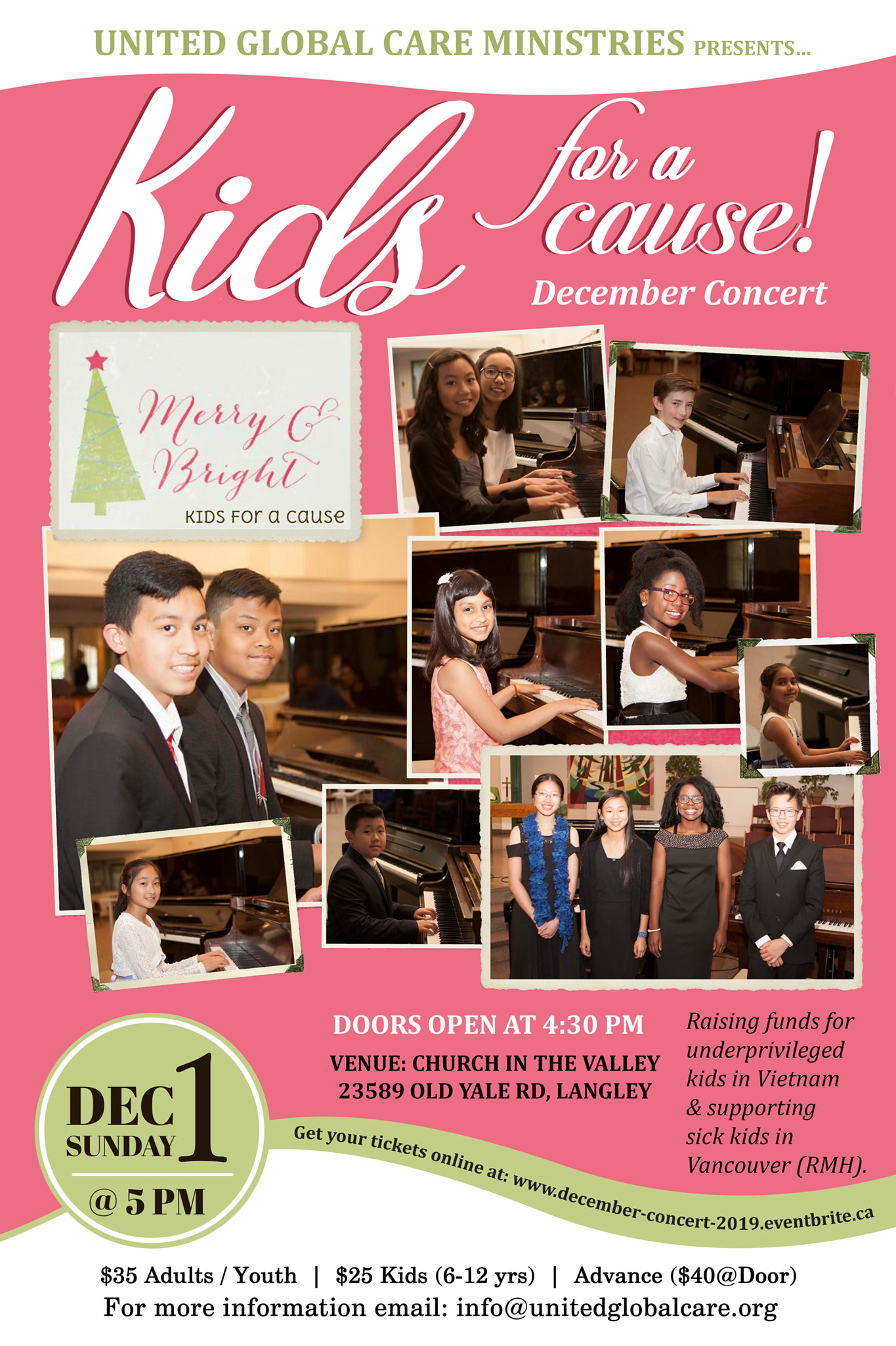 This benefit concert will be performed by K12 music students who contribute their talents to different humanitarian work across the globe. It’s an evening you will not want to miss, as the sound from various instruments (pianos, violins, Cellos, Voices, etc.) fill the air with heart-warming old-time Christmas classics! This great evening of entertainment will leave you speechless! Tickets are $35 Click the link below to register: https://www.eventbrite.ca/e/kids-for-a-cause-december-concert-performed-by-k12-music-students-tickets-73054856041