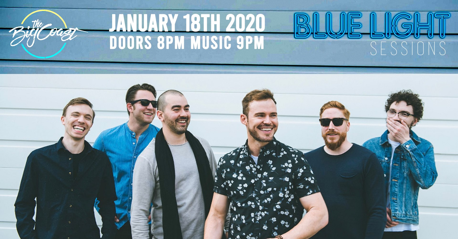 Blue Light Sessions presents: The Big Coast LIVE at Blue Light Studio – 1839 Franklin Ave. Saturday January 18th Doors at 8PM, Music at 9PM Tickets: $15 Advance / $20 Door Full bar available for 19+ guests **Please be aware that this is not only an intimate show, it is a live video shoot. There will be cameras filming the whole show. It is also standing room only, be prepared to get cozy** We’re excited to welcome back The Big Coast for their second Blue light Session and as our 2020 kick off band for the year! The Big Coast is based in Vancouver, British Columbia, Canada; the indie/soul sextet is led by Vocalist/Guitarist Guy Wilkins. His heartfelt, dynamic, and engaging vocals are flanked by bombastic brass lines, and supported with a rock solid rhythm section. Wilkins was born in Australia, grew up in Johannesburg, South Africa. He made his living busking all over Europe in his late teens and early twenties. After spending many years travelling the world, Wilkins settled in Vancouver almost a decade ago. The Big Coast grew out of an informal weekly jam session. At times there were upwards of 13 musicians crammed into a small rehearsal room playing a mixture of covers, and some of Wilkins’ original songs. The group started to become more serious and focused on their original material in 2016. The lineup solidified in 2019; with Drummer Arthur Delahooke, Bassist Devon Clarke, Trombonist Dexter Juric, Saxophonist Riley Johnson, and Guitarist Patrick Barnett joining Wilkins. This group has played many prestigious festivals in British Columbia, and they are a local favourite—filling popular venues. Check out their Blue Light Session from their show back in March 2019! https://youtu.be/cUW4jooDQPQ Web: thebigcoast.wordpress.com FB: facebook.com/thebigcoast/ Insta: instagram.com/thebigcoast Youtube: youtube.com/channel/UCISdkDq8fvKkbk7wZFa-njw