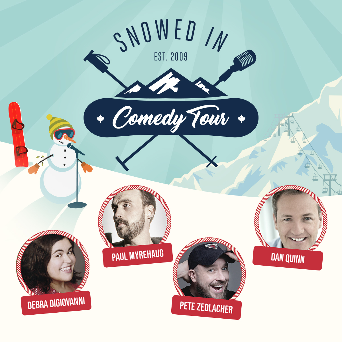 — Snowed in Comedy Tour is Back in 2020 and Bigger Than Ever When: Jan. 3 – Apr. 25, 2020 VANCOUVER, B.C. — They’re on the road again. Canada’s biggest comedy tour, The Snowed in Comedy Tour is back for its 12th consecutive year, bringing a blizzard of laughs to Canadians from coast to coast. A Canadian success story in a market of American comedic giants, The Snowed in Comedy Tour is bigger than ever, featuring a rotating line up of four Canadian stand-up comedians, playing 70 shows in 63 cities, from the dead of winter until spring thaw. Four comedians touring across the country is a recipe for laughs –– even offstage. This year fans will have access to the antics that go on in transit through Truck Jokes, a comedy webseries. The series focuses on the riffing that goes on during the long car rides from gig to gig. Snowed in Comedy Tour is a showcase of some of Canada’s best comedic talent. Four very different, very funny performers unite for a fantastic evening of comedy. Three-time female Comedian of the year Debra DiGiovanni (Video on Trial, Match Game, Debra DiGiovanni: Single, Awkward, Female) rounds out the rest of the line-up of Snowed in Comedy Tour veterans, five-time Canadian Comedian of the year nominee Pete Zedlacher, Just for Laughs winner Dan Quinn, the $25,000 Great Canadian Laugh off winner Paul Myrehaug, along with special guest appearances. There’s something for every brand of humour, and everyone will walk away with their own personal favorite. As in years past, the lineup will vary from city to city, so comedy fans are urged to check their local listings. Sometimes not taking yourself too seriously pays off, and Snowed in Comedy Tour is proof of that. Dan Quinn wanted to go on a snowboarding vacation with his comedian buddies, but he couldn’t afford to take time off work. He scheduled comedy tour dates strategically around what ski hills he could hit during the day, and paid for his lift tickets and rentals by doing comedy shows at night. The grassroots Canadian comedy tour has proven to be a winning equation. In a market still dominated by American acts, the homegrown tour has won fans over one performance at a time, and become the largest comedy tour in Canada with over $2 million in ticket sales, and performed internationally for audiences in Australia, U.S.A., France, and Switzerland. The tour continues to grow this year. The B.C. leg of the tour kicks off Jan. 3 and features dates province-wide until Feb. 15. The Snowed in Comedy Tour will then travel through Saskatchewan, Alberta, Manitoba, Ontario, Nova Scotia, and New Brunswick, before winding down in PEI in April. About the players: Dan Quinn has done numerous appearances on TV and radio and has won the Canadian Comedy Competition at Just for Laughs Festival in Montreal. He has done Comedy Now on CTV, The Debaters, Sirius XM radio and won Best of the Fest at the Hubcap Comedy Festival in Moncton. He travels around the world performing in England, The U.S. Australia, Switzerland and France. Paul Myrehaug now resides in London, England but was born in Camrose, Alberta and tours around the Globe. He won the Great Canadian Laugh off $25,000 prize and has been on Just For Laughs, Sirius XM and the Debaters. Pete Zedlacher is becoming one of the most recognized acts in Canada. He has been nominated 5 times for Comedian of the year, done the Just For Laughs Gala 8 times and won the Sirius-XM Radio Top Comic Competition. Along with his Acting Credits he is now writing for the CBC Johnny Harris show, OF ALL PLACES. Debra DiGiovanni has been named her hometown Toronto’s favourite comedian three times in five years. Debra’s persona is one of the best developed of any comic working today- couple that with a hilarious act that is so personal everyone can relate- and you see why Debra is so popular. In 2018 she made an appearance on Conan O’Brien, and she’s the star of her own Crave TV and Netflix specials. She’s well-known in Canada for appearances on Much Music’s Video On Trial. -30-