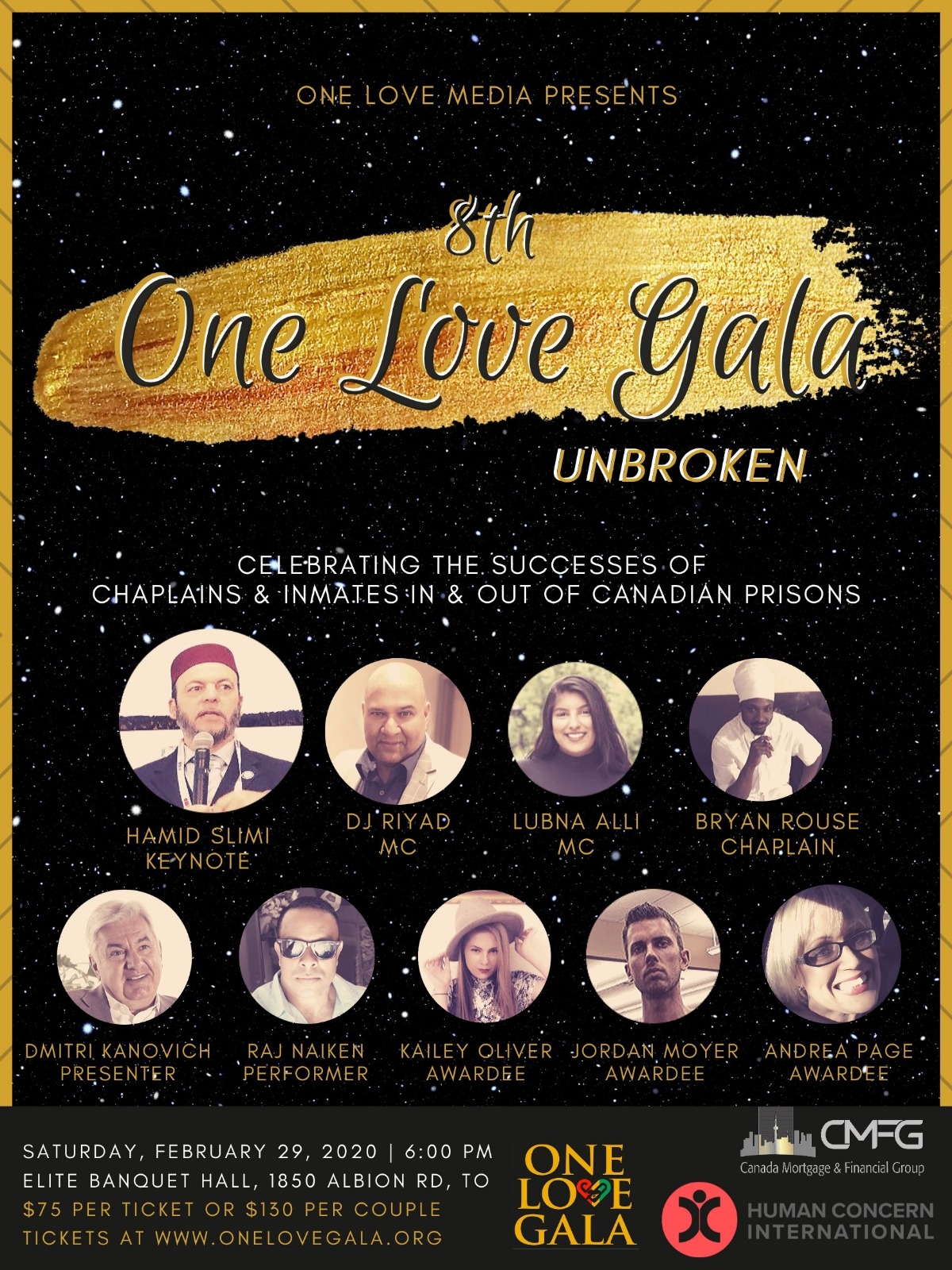 The One Love Gala is a fundraiser for Interfaith Prision Chaplaincy. The gala was born in a moment of inspiration seven years ago when Chaplaincy was under some serious threat in Canada. The One Love Gala serves as a keystone for the Chaplaincy community to collaborate and go beyond simply advocating for the continuation of the crucial services in Canadian Prisons to one that celebrates Chaplaincy and it’s ability to rehabilitate incarcerated individuals.
